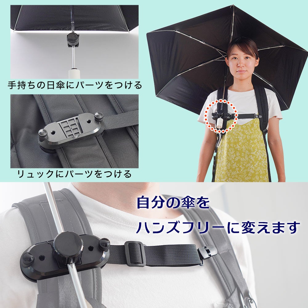 傘を代わりに持って手ぶらでさせるリュック取り付け式傘ホルダー