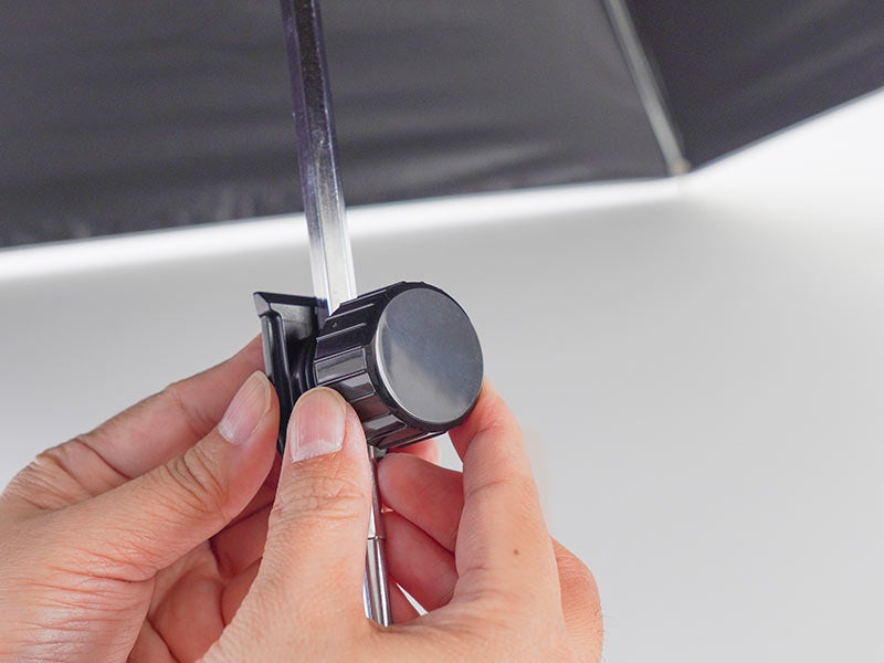 お手持ちの傘にアタッチメントを取り付けて、リュックに本体を取り付け。本体の上からアタッチメントをスライドすれば傘をセットでき、手ぶらで傘をさすことが可能。傘の対応サイズは直径6~14.5mmのシャフト。リュックの対応サイズは肩ヒモ幅12~75mm 厚み15mmまで。傘部分もリュック部分も工具不要でダイヤルを回すだけで取り付け可能。左右どちらの肩ヒモにも取り付け可能。ハンド部分でもう片方の肩ヒモに固定してゆれを抑えます。取り付け取り外しはスライドするだけのワンタッチで可能。日傘でも雨傘でも取り付けできます。
