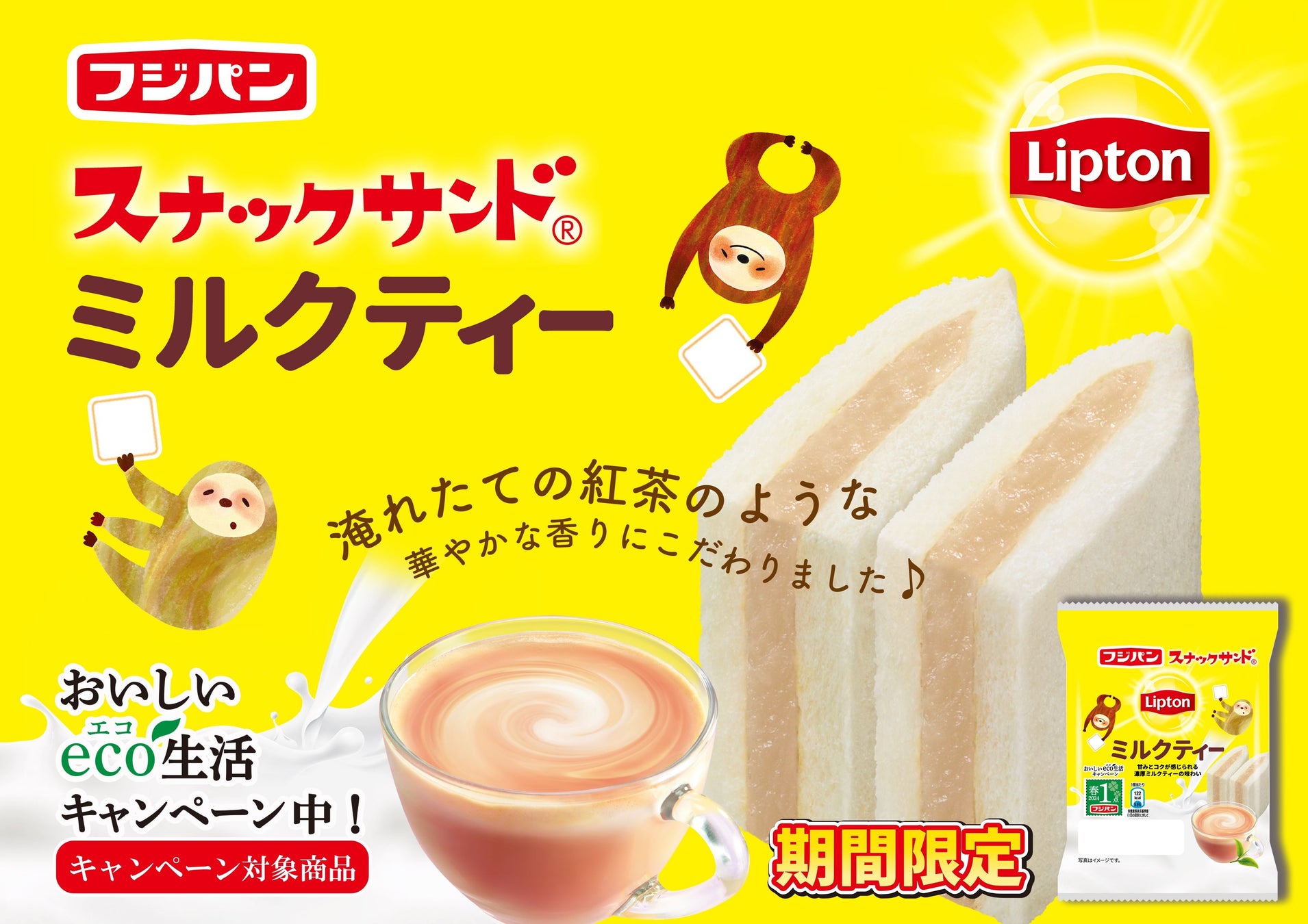 今回のコラボレーションでは『スナックサンド ミルクティー 』と、ソフトフランスパン生地にミルクティー味 のクリームをサンドした『ロングスティック ミルクティー』 の2品で展開いたします。味わいやパンの食感の違いをお楽しみください。パッケージには、リプトンのテーマカラー『 イエロー 』 を採用。さらに、リプトンのオリジナルキャラクターのらり&くらりを デザインし、可愛いくホッと 癒される パッケージに仕上がりました。本格的な紅茶の 香りをどうぞ お楽しみください。