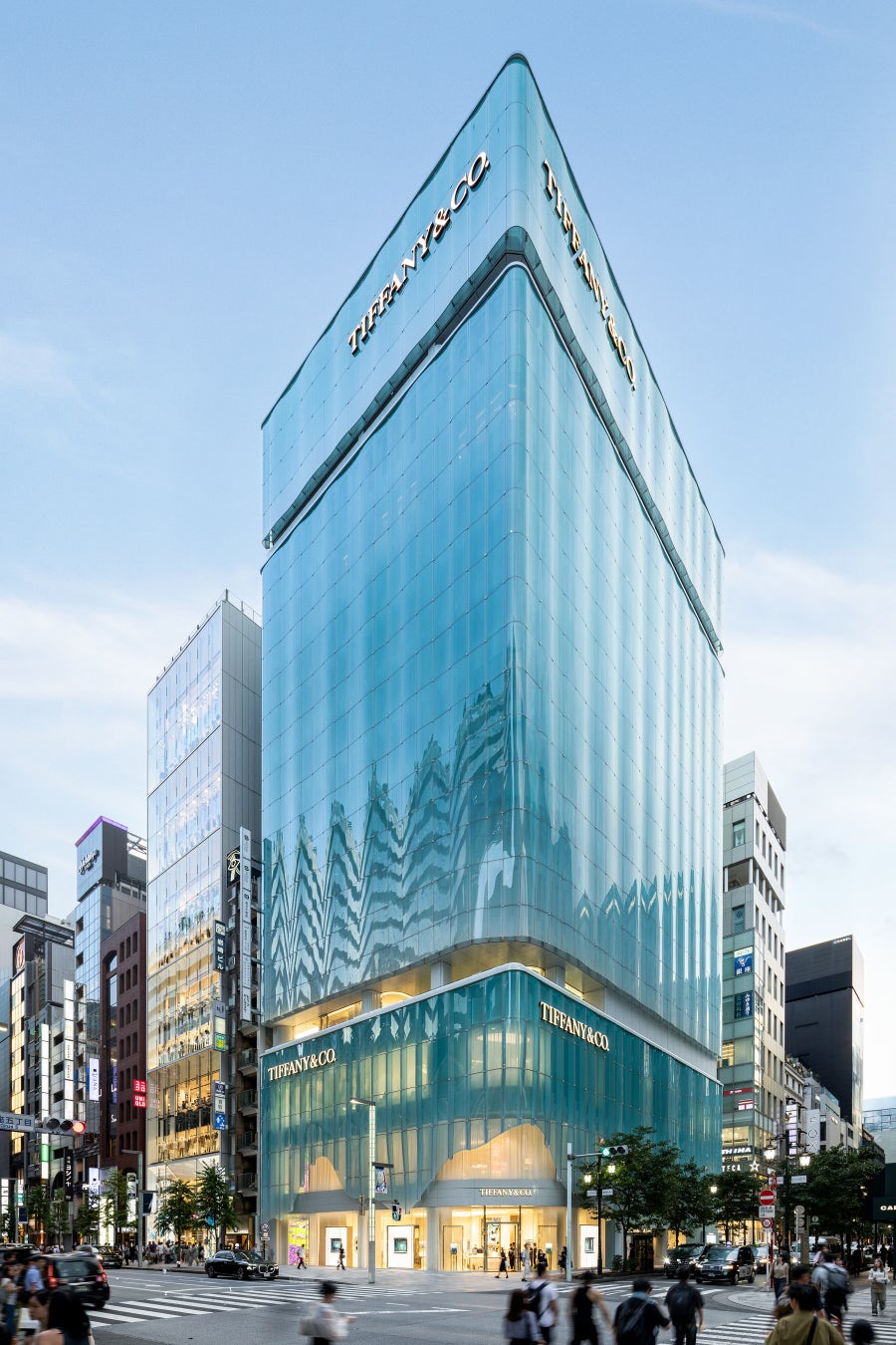 このガラス加工およびBIM技術は、当社がファサード工事を手掛けたクロサワビル(東京都中央区銀座6丁目)の外装監修を担当した建築家 青木 淳氏の構想である“藤の花が風にそよぐような表情”を具現化することを目的として開発し施工いたしました。(施工会社:大成建設株式会社)