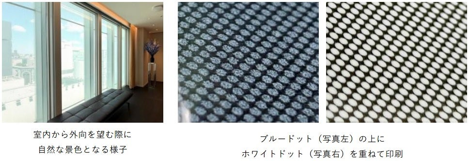 ②内外の色調を変え、外部からはブランディング、室内からは自然な景色の見え方を維持した発想と技術