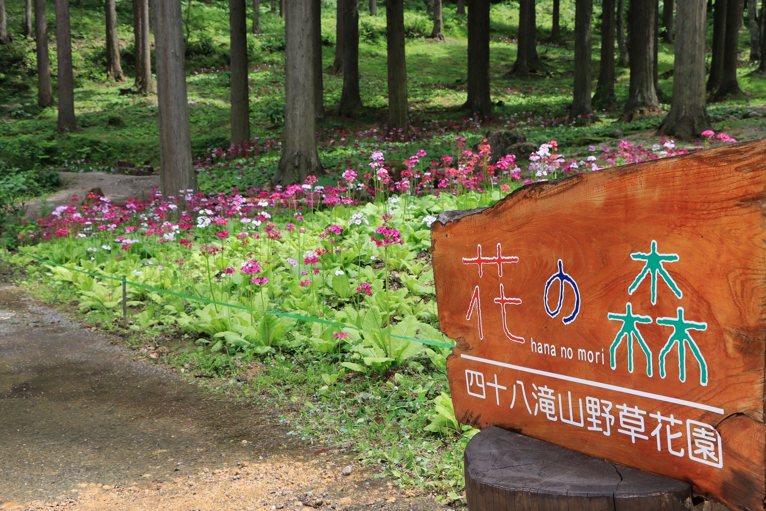 岐阜県高山市国府町にある宇津江四十八滝公園内の一角に、クリンソウ約15万本、ササユリ約2万本、アジサイ約5千本を植栽した約35,000㎡の山野草花園があります。