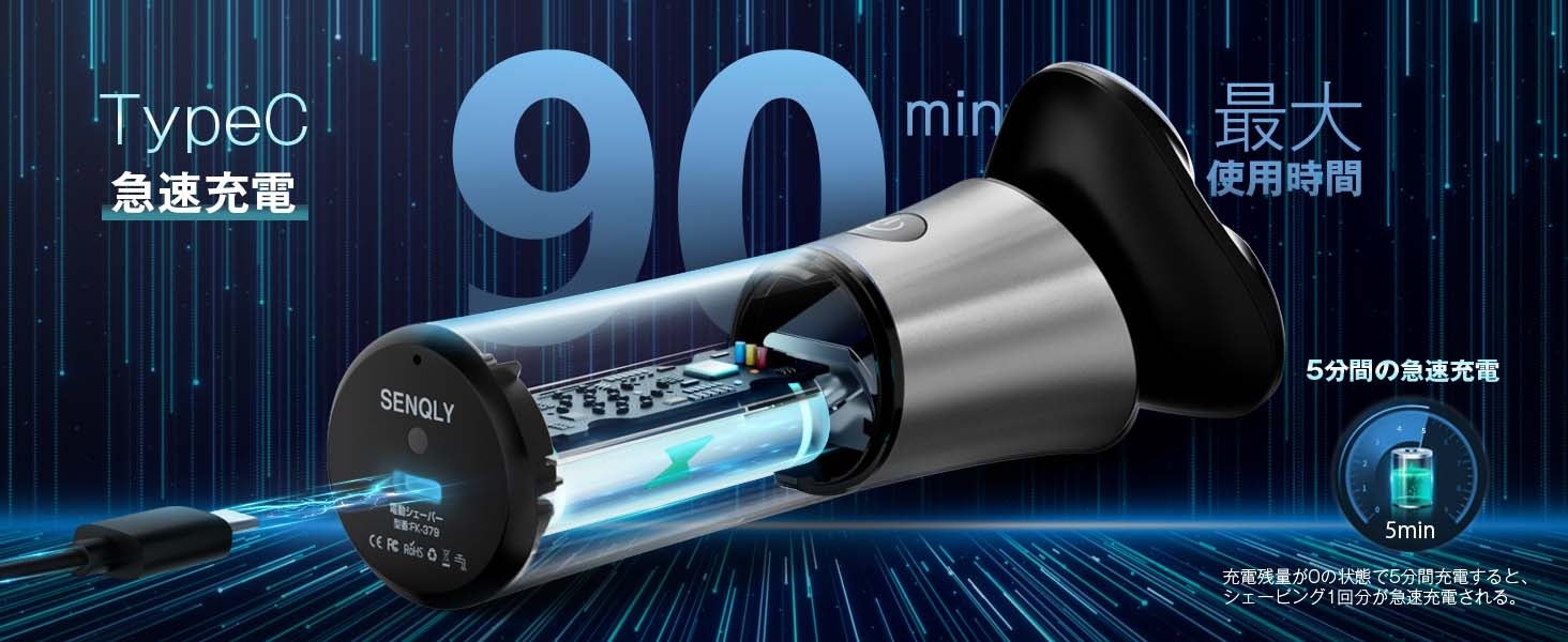 急速充電機能により、90分でフル充電が完了。一度充電すれば、1日1分の使用で約90日間使用可能です。出張や長期旅行でも安心して携帯でき、常にシェーバーが準備万端の状態を保てます。LCDディスプレイでバッテリー残量がリアルタイムで確認できるため、充電切れの心配もなく、いつでもスムーズな剃り心地を提供します。
