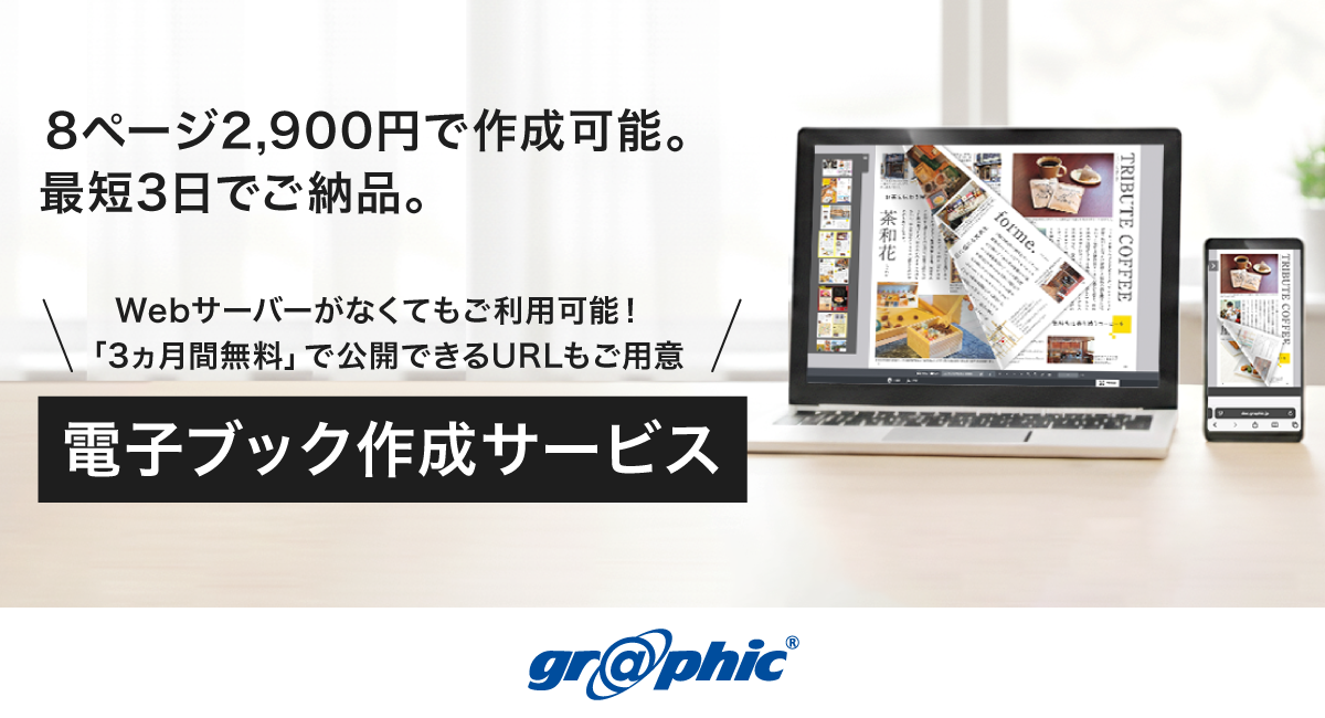 株式会社グラフィック(本社:京都市伏見区、代表取締役社長:西野能央、以下「当社」)はネット印刷事業にて、電子ブック(eBook)作成サービスをリニューアルしました。これまで通り印刷とセットに加えて、電子ブック単体でもご注文が可能になりました。
