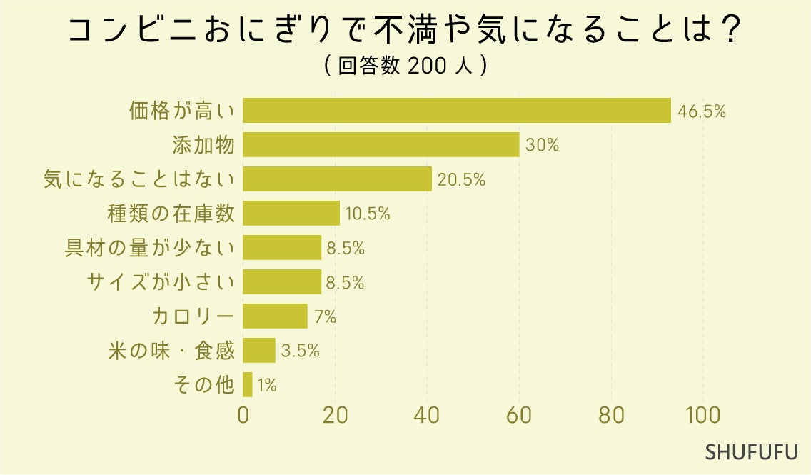 コンビニおにぎりで不満や気になることは?(複数可)