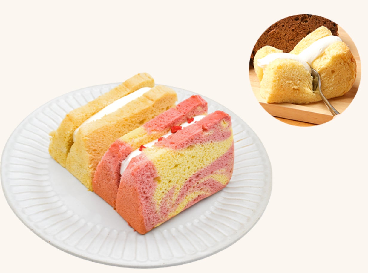 人気のシフォンケーキ『モフォン』を、食べやすい大きさにカット。