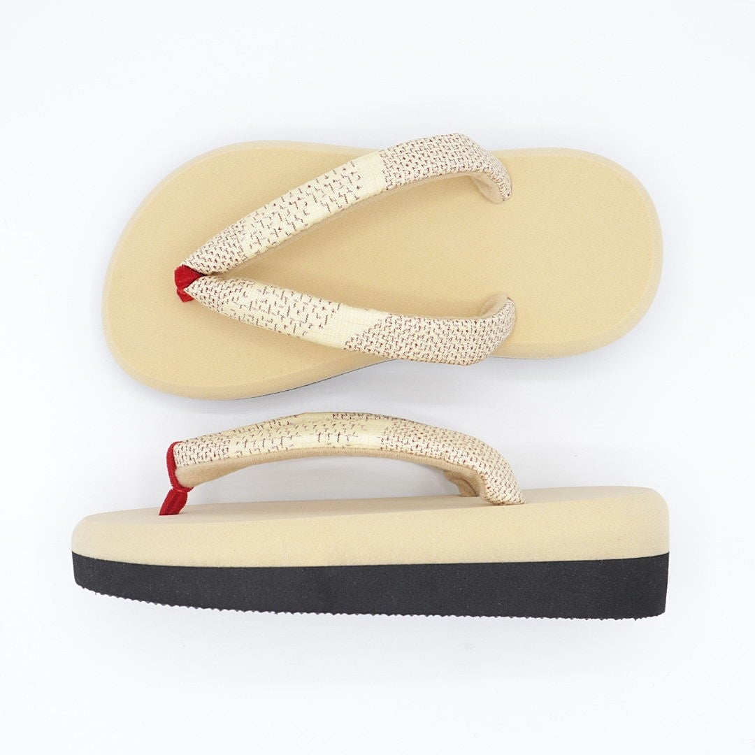 鼻緒とは、かつてお客様ひとりひとりの足形に合わせて、職人が最終的に調整してきたもの。つまり、草履屋の店先で最終フィッティングが行われることが前提でした。足の甲が高い人、足が大きい人でも鼻緒が最初からフィットするのはこのためです。しかし、現代生活においてそうした販売形態は望めません。しかし「ポンダル」ならば、既製品でもスニーカーのような履き心地が得られます。