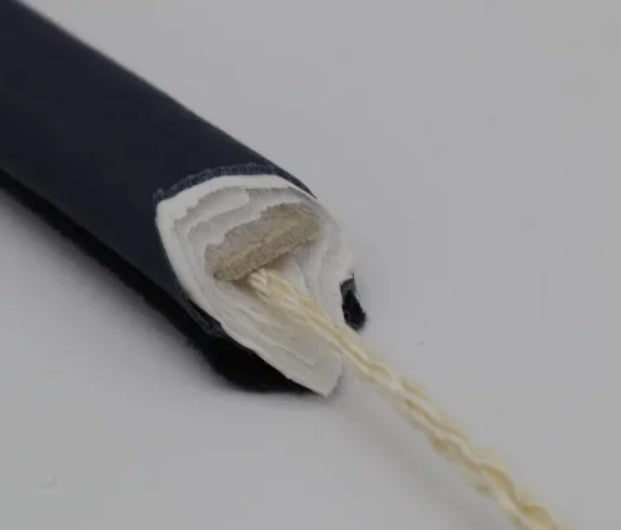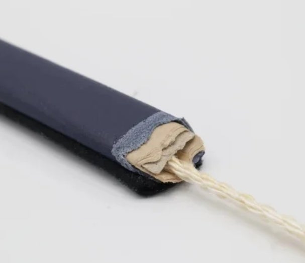 一般的な鼻緒(写真左)は、芯材に薄茶色の紙を巻いて強度を高めています。対して、ポンダルの鼻緒(写真右)は、紙の代わりに薄いスポンジを巻いています。スポンジの弾力性によって、鼻緒は足の甲を締め付けることなくフィット感を出しています。