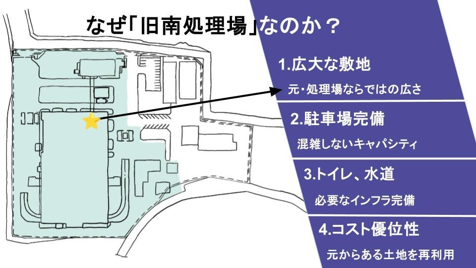 旧南処理場の広大な遊休地を活用し、親子が安心して過ごせる複合型レジャー拠点「YOKOSUKA WAKUWAKU BASE」を整備するアイデアです。