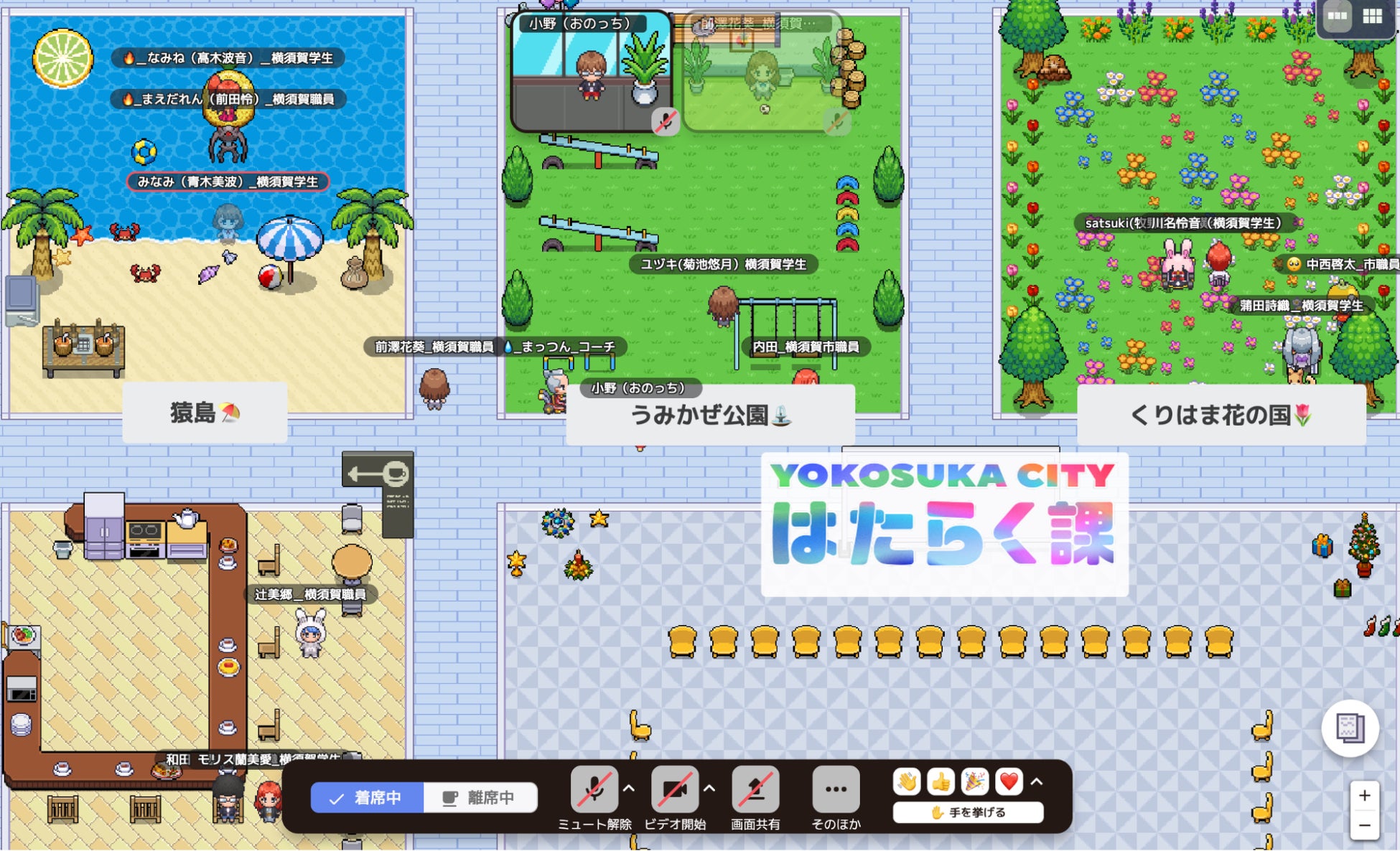 仮想空間につくられた「はたらく課」を活用しながら職員やコーチとのディスカッションを重ね、アイデアを磨き上げていきました。