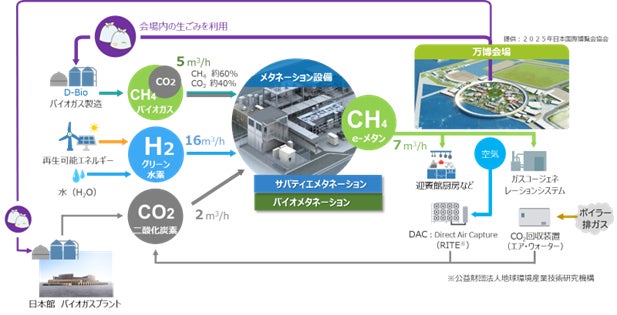 このたび、経済産業省が出展する「日本館」のバイオガスプラントで回収される二酸化炭素(CO2)を、e-メタンの原料としてリサイクルすることが決まりましたので、お知らせします。