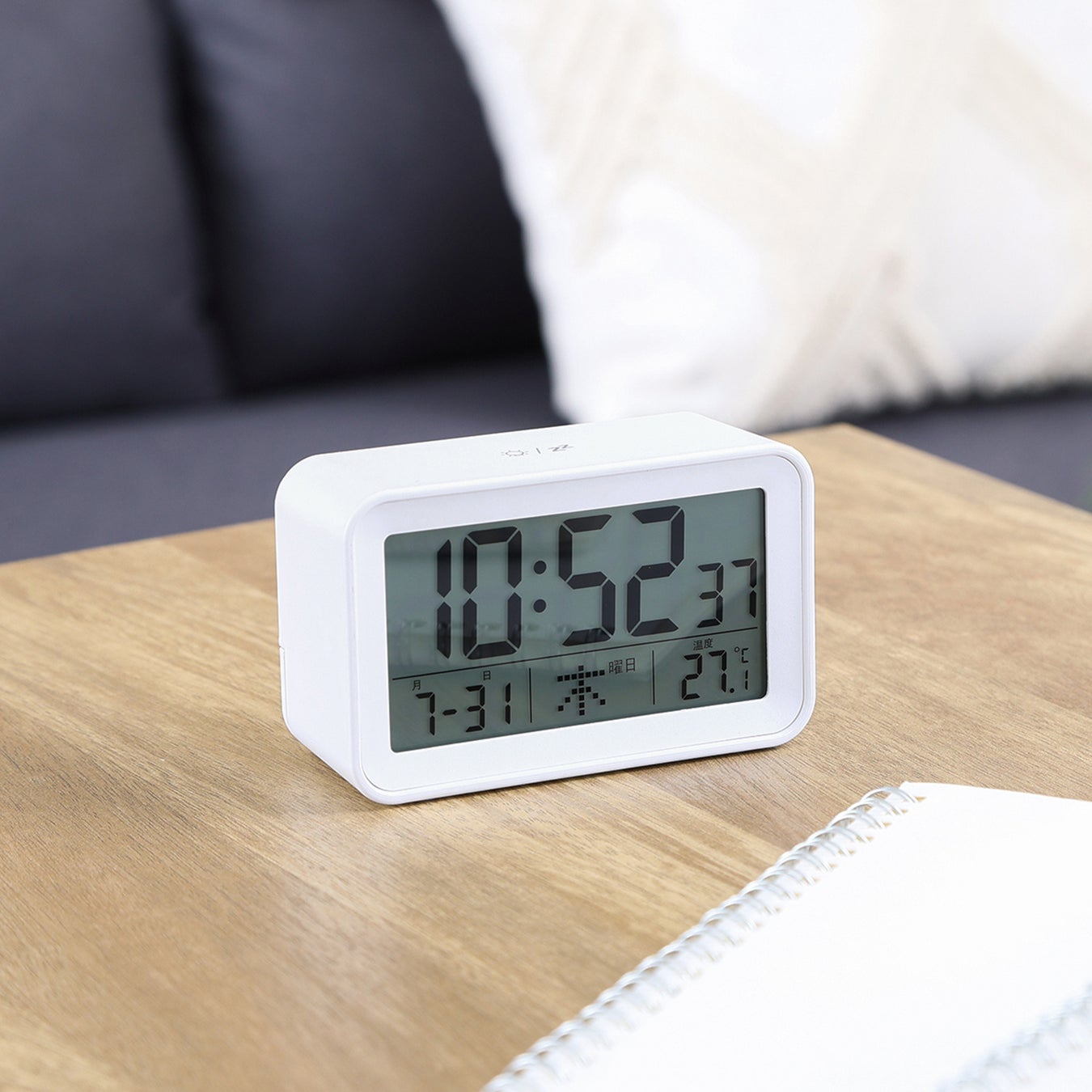 手のひらに収まるコンパクトサイズながら、日付・曜日・温度をしっかり表示。シンプルでベーシックなデザインはどんな空間にもなじみ、飽きのこないデザインで長くご使用いただけます。