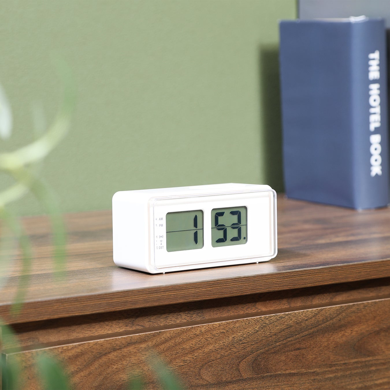レトロな雰囲気のフレームに、パタパタと表示が切り替わるフリップ風ディスプレイを採用。どこか懐かしくも新しいデザインで、空間に温かみを添えます。バックライト付きで、夜間でも照明をつけずに時刻を確認できます。