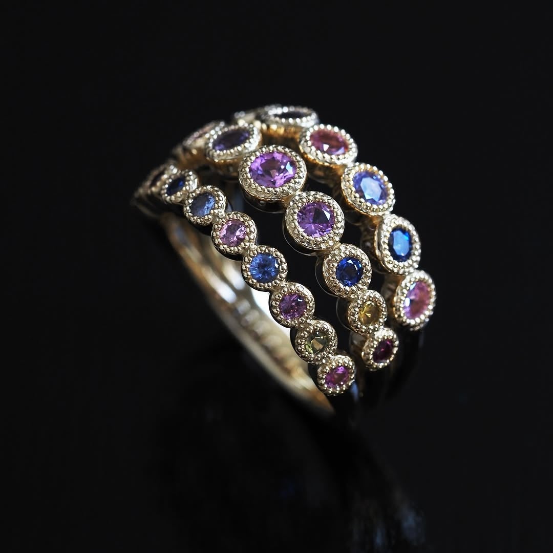 今回の注目は、パーセル ジュエリーの定番コレクションに新たな魅力を加えた『ミルシェノンシリーズ』の進化版です。職人の手仕事による繊細なミル留めの技術に調和するのは、4Cに囚われず選び抜かれた個性豊かなダイヤモンドと、美しい発色を誇るサファイア。それぞれが細やかな煌めきと品格を纏っています。