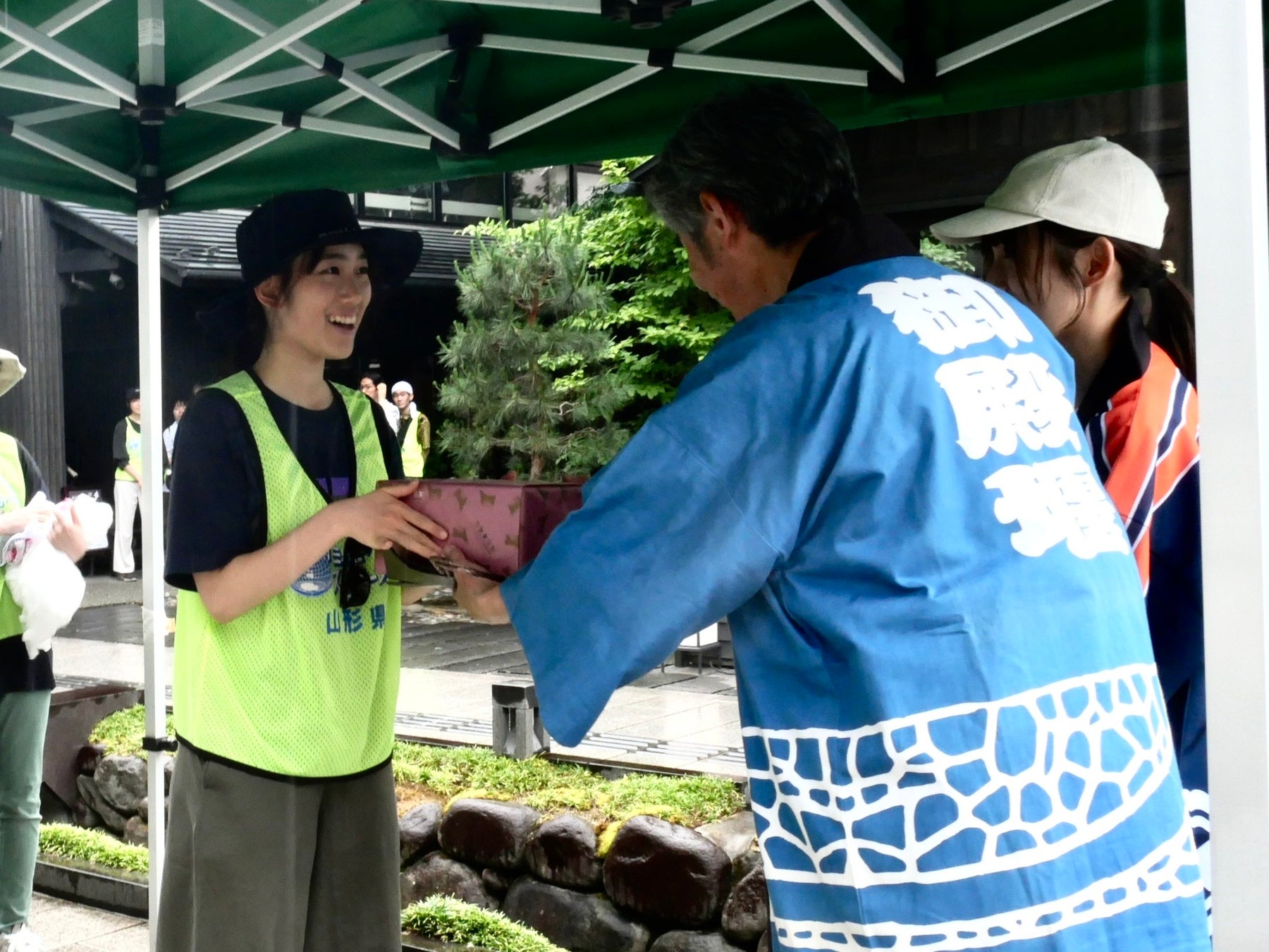 また、ごみ拾いエリアの各所には、山形大学「まちの記憶を残し隊」が制作した地域にまつわるクイズを設置。歴史や文化、建造物等に関する問題を出し、正解したチームは追加ポイントが得られる仕組みを導入しました。環境美化はもちろんのこと、イベントに参加した地域住民の皆様が、地域への関心と愛着を深められるような機会を目指しました。