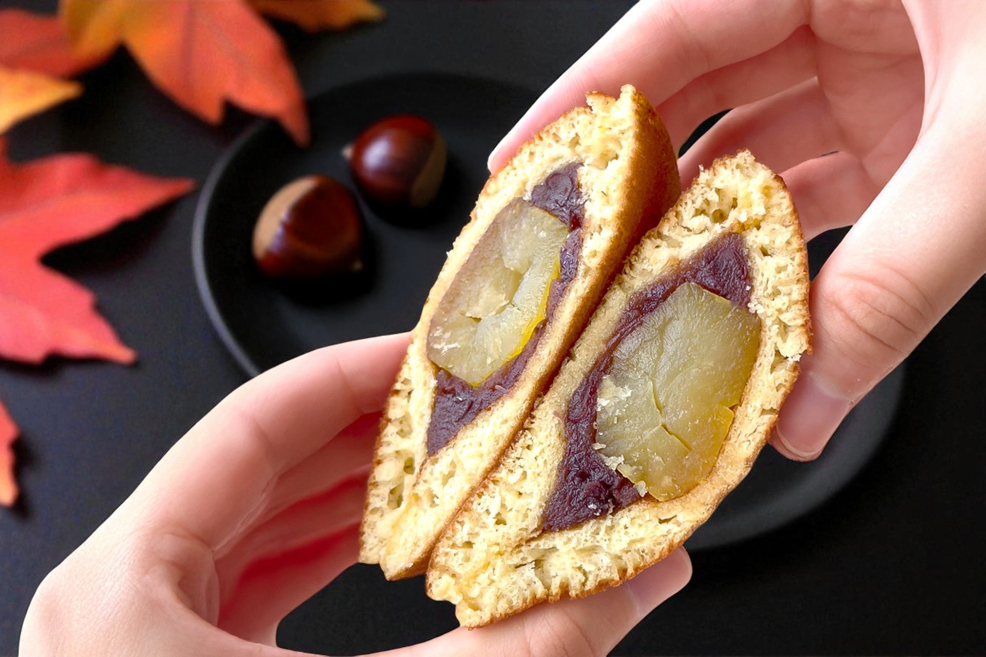 噛むほどに、小豆の香ばしさと栗の風味が溶け合い、しっとりとした生地がその旨みをやさしく、そして力強く包み込みます。まるで“秋をまるごと閉じ込めたような、幸福の一口”。