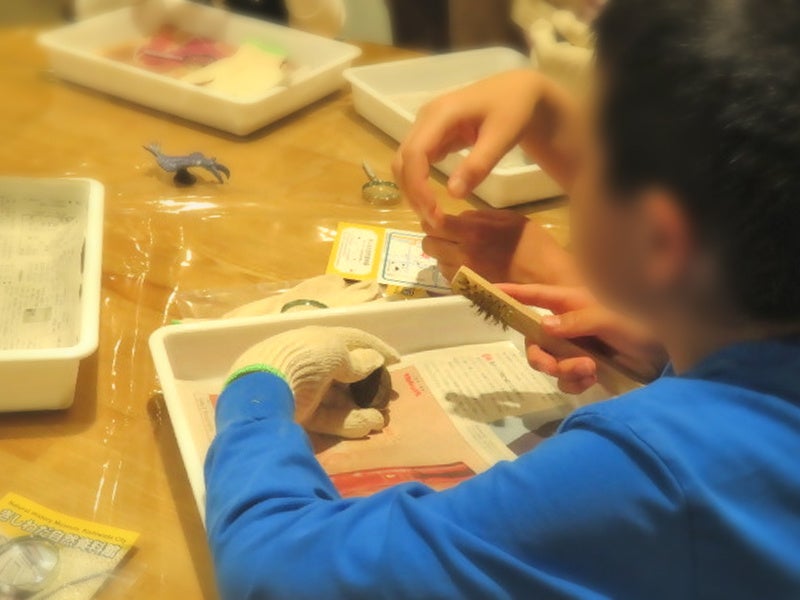 『「三葉虫」のクリーニング体験』:本物の三葉虫の化石を岩石から取り出すクリーニング作業をしてみよう。クリーニングした化石は持って帰れるよ。