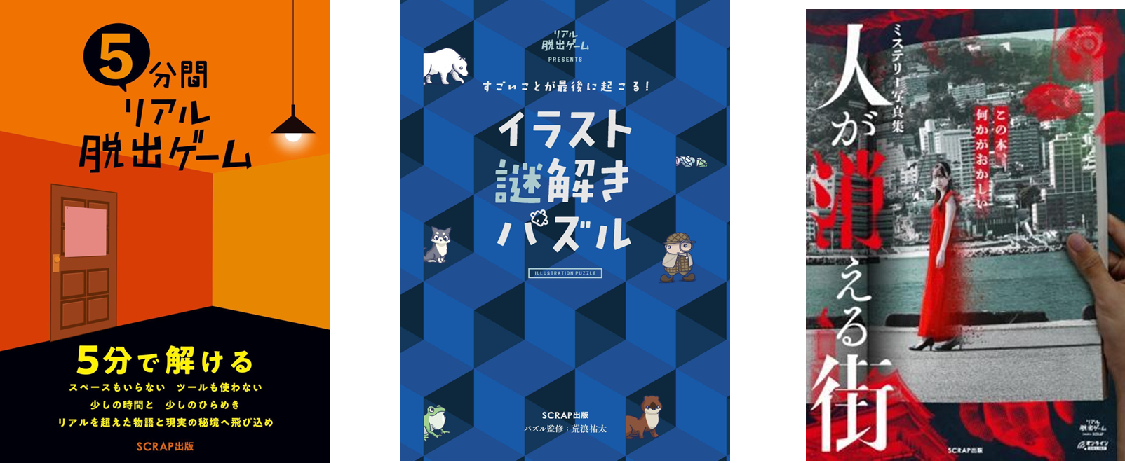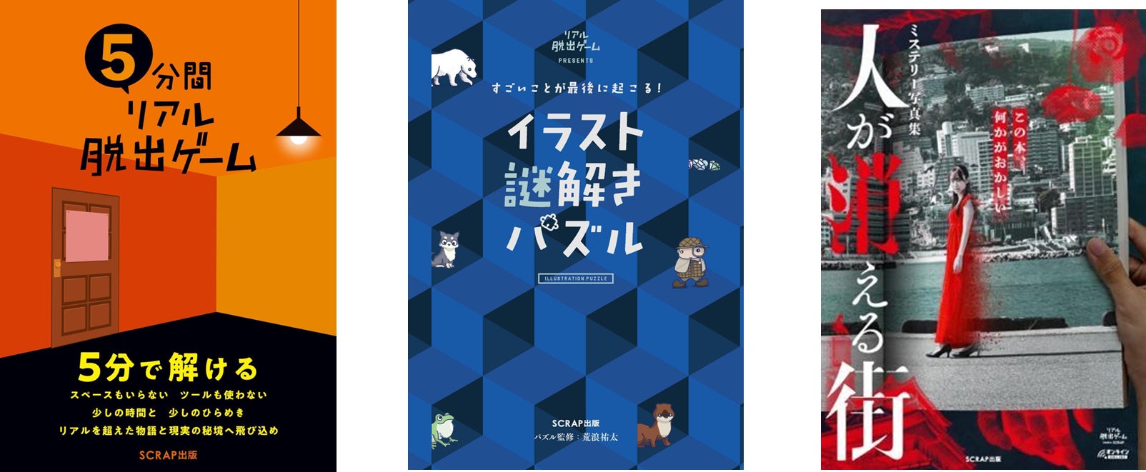「2016年6月、SCRAPの出版レーベルとして設立。「5分間リアル脱出ゲーム」シリーズ、「リアル脱出ゲームブック」シリーズ、『すごいことが最後に起こる! イラスト謎解きパズル』など、謎解き専門書籍を次々と発行し、自宅でも楽しめる濃密な体験を提供。また、2017年から始まった日本唯一の謎解き検定試験「謎検」の対策問題集も毎年発売し、好評を博している。