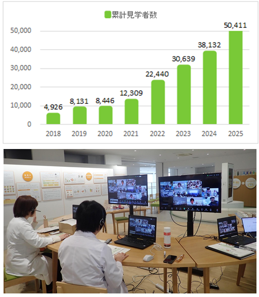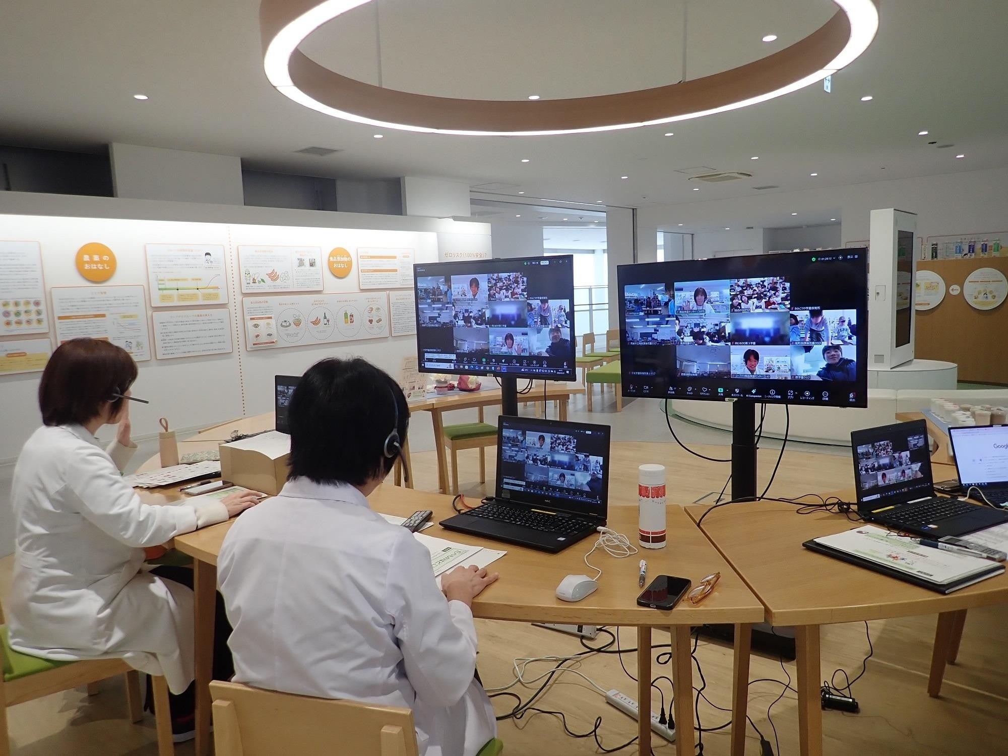 2018年のリニューアル以来、本センターでは商品の検査風景を間近で見学できる機会を提供してきました。2020年11月に導入したオンライン見学(写真)により、遠方の方や外出が難しい団体の方々も参加可能となり、見学者が増加しています。