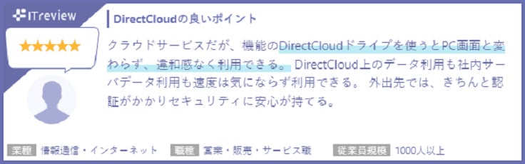 “DirectCloudで更なるドキュメントデータ活用”をミッションに掲げ、レガシーシステムに縛られない、あたらしい働き方をサポートすべく高度なセキュリティと利便性を兼ね備えた法人向けクラウドストレージ「DirectCloud」の開発・販売を行っています。