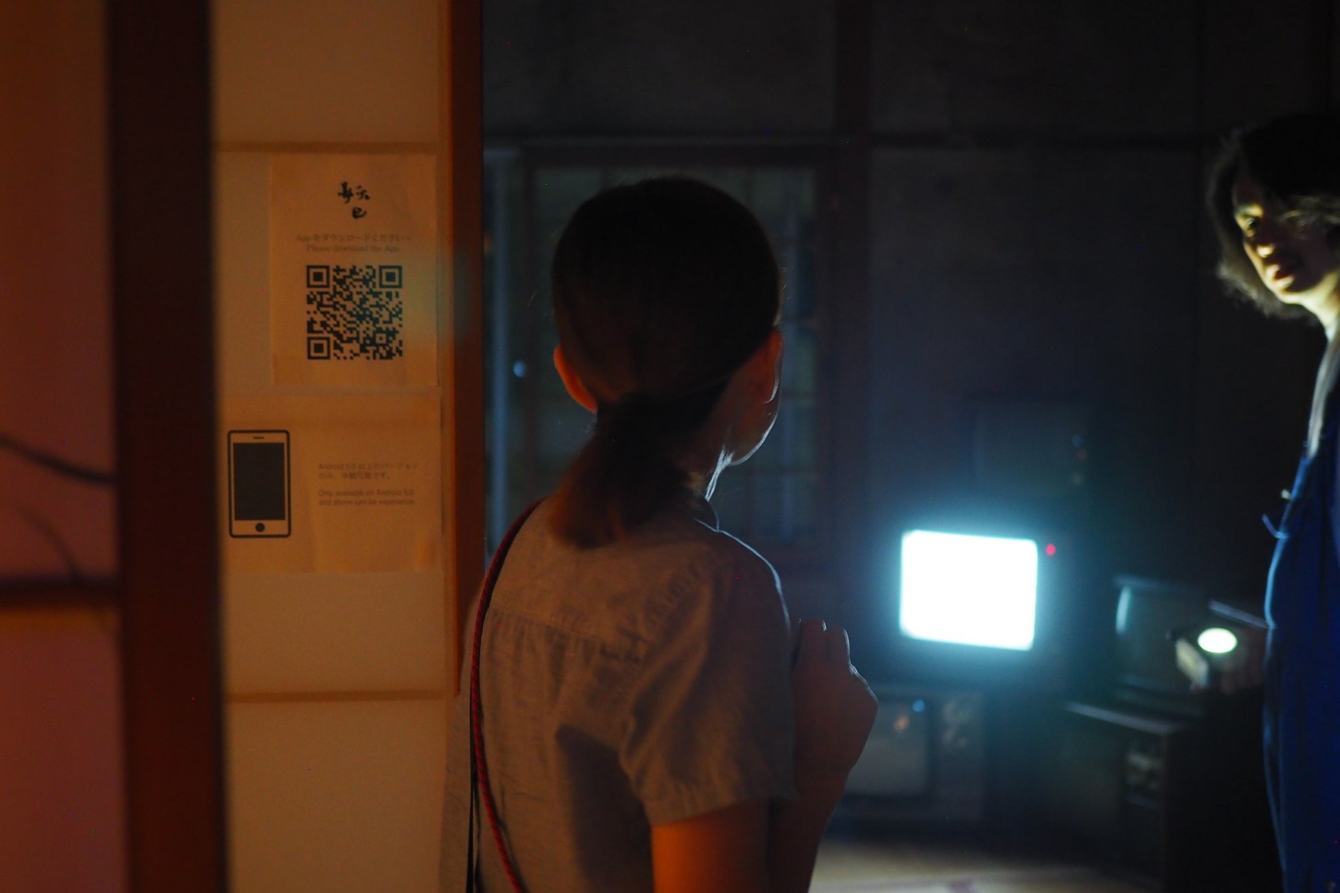 夜、妖怪美術館に集合したらスタッフが「迷路のまち」の路地を通って普段は開館していない「妖怪美術館5号館」へ案内。ここは2019年に台湾芸術大学の学生を招聘して妖怪アートのインスタレーションをしてもらった建物で、かつては「二葉食堂」という食堂兼住宅だったところです。2階の4室の壁、障子、家具などに妖怪画や造形作品が展示されています。作品を鑑賞しながら館内を進むと、何か不思議な出来事が起こるかもしれません。お化け屋敷ではなく、あくまでも美術館の鑑賞ツアーですので脅かしたりすることはありませんので、ご安心ください。
