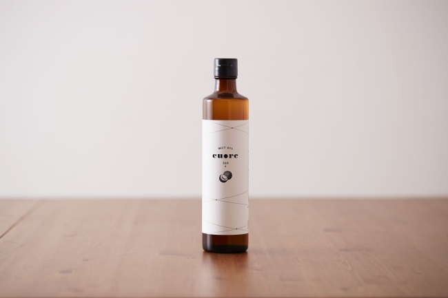 MCTとはMedium Chain Triglyceridesの頭文字を取っており、CuoreのMCTオイルはココナッツ成分100%由来でできている中鎖脂肪酸オイルでございます。