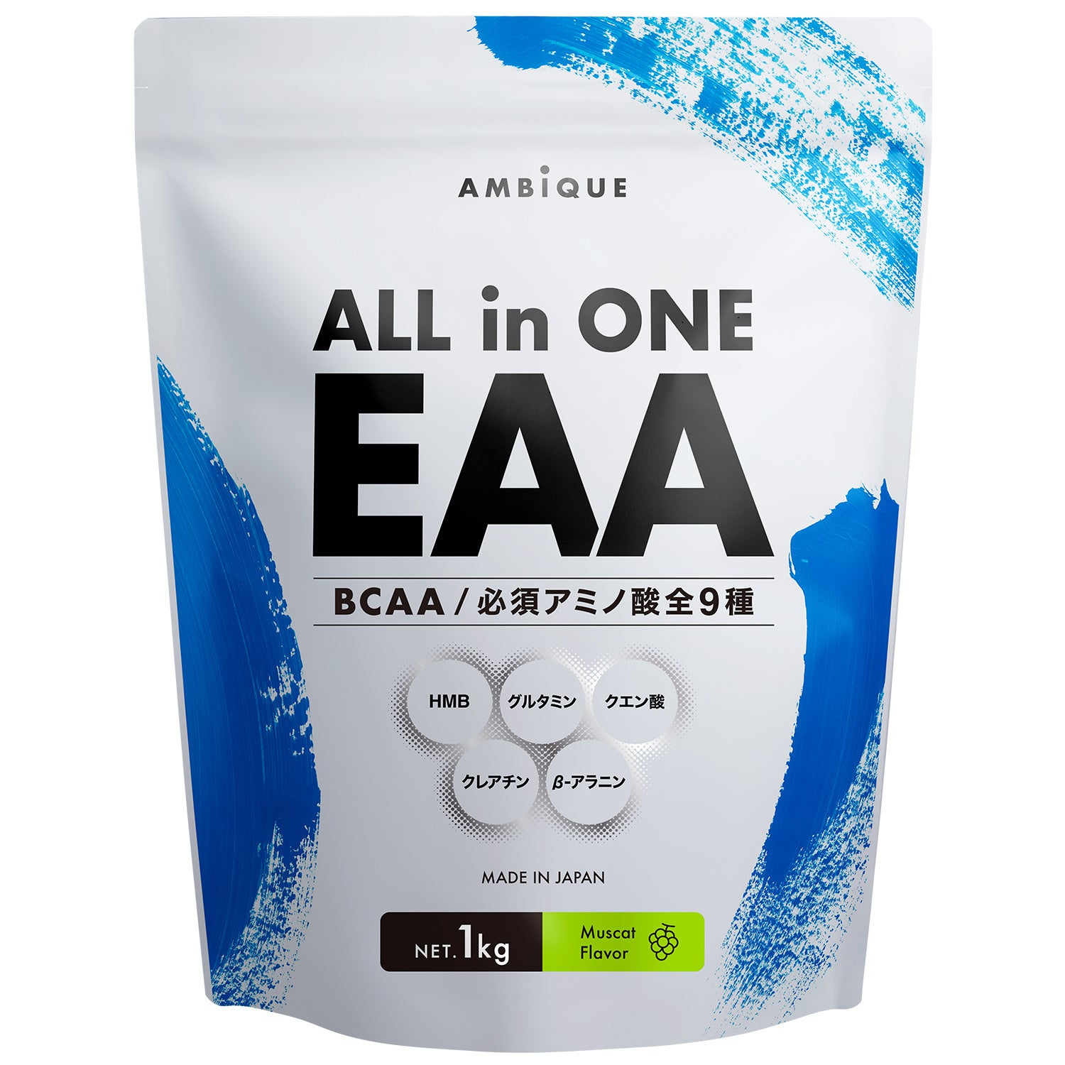 大人気フレーバーからもビッグサイズも登場!毎日のトレーニングに効果的な必須アミノ酸全9種(EAA・BCAA)に加え、筋トレサポート成分である「HMB・グルタミン・クエン酸・クレアチン・β-アラニン」をオールインワン配合した、業界初*1のEAAサプリメントです。人工甘味料・合成着色料・保存料無添加、すっきりとしたマスカット風味でサプリメントが苦手な方でも飲みやすく、大容量なので毎日手軽にお召し上がりいただけます。