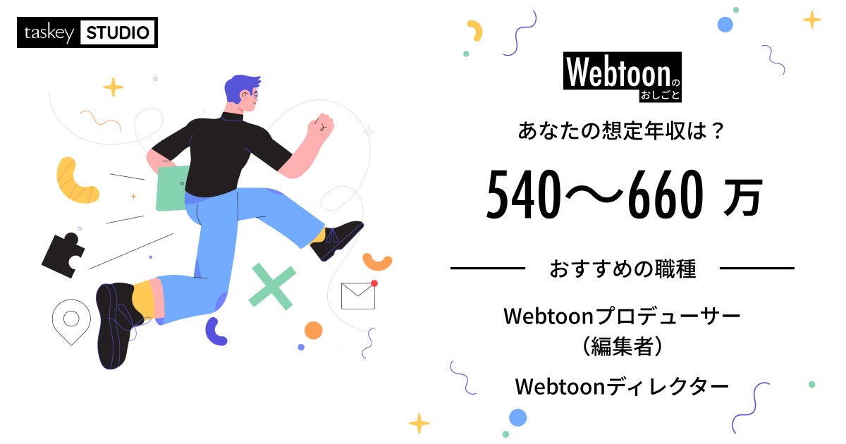 taskey株式会社が「Webtoonのおしごと年収診断」を公開。クリエイターが活躍し続けられる環境を目指して