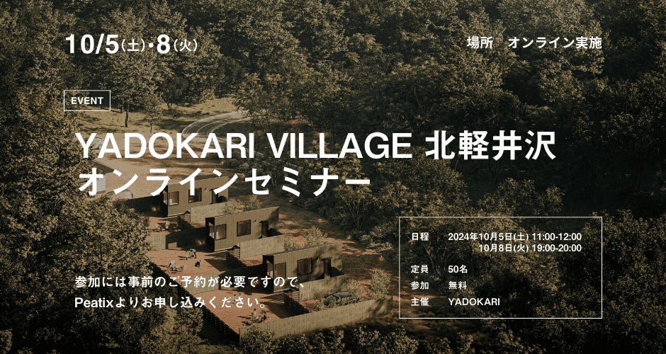この秋、YADOKARIは、自然豊かな北軽井沢に新しくオープンする「YADOKARI VILLAGE 北軽井沢」をご紹介するオーナー様向け説明会を開催します。タイニーハウスの所有、共有、そして収益化に興味がある方、または新しいライフスタイルを探している方にご参加いただきたい内容となっています。