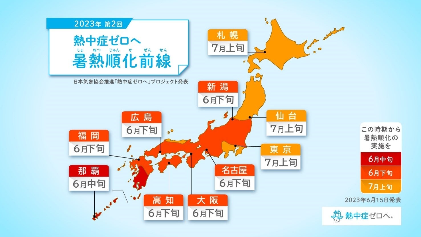 真夏を迎える前に、体を暑さに慣らすことで対策を!2023年「熱中症ゼロへ 暑熱順化前線(第2回)」を公開