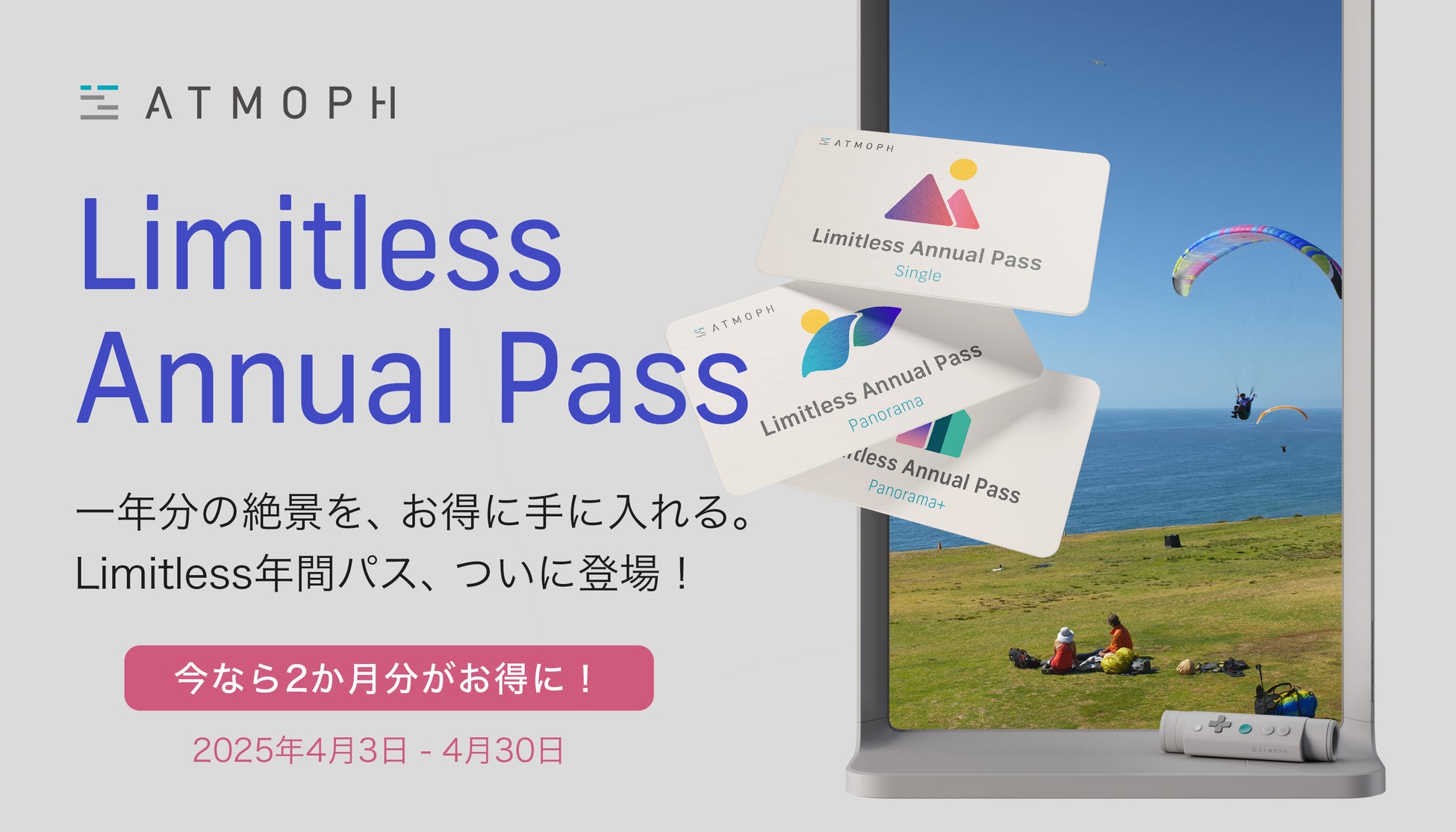 2025年4月3日(木)、世界40カ国以上で2.5万台以上が導入されているバーチャル窓『Atmoph Window』の開発・販売を行うアトモフ株式会社は、1,800以上の風景が見放題になるサブスクリプション「Limitless」の年間パスを発表します。