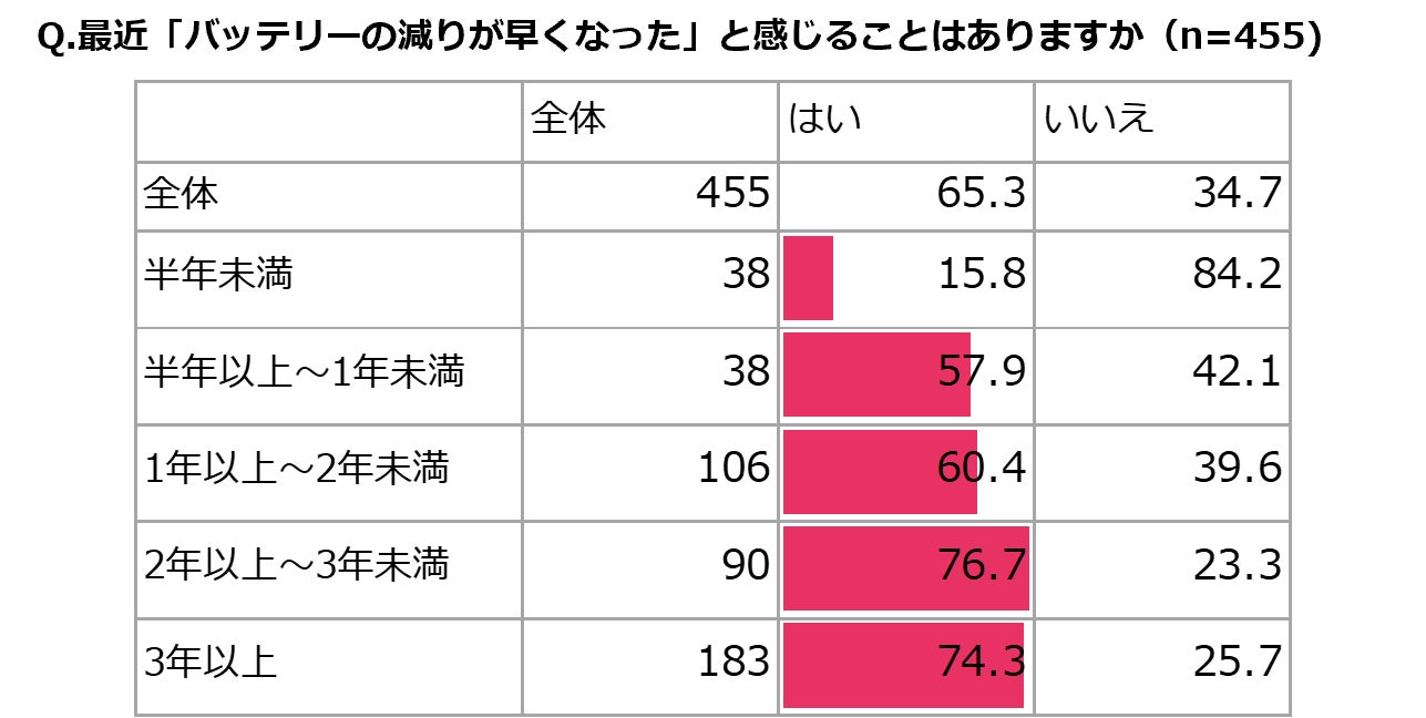 調査結果| 「バッテリーの減りが早くなった…」と約7割が実感。しかし、対処していない現状が浮き彫りに。