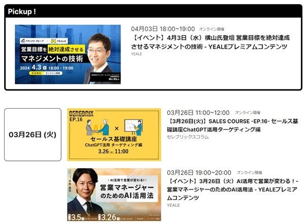 YEALE(エール)にて2024年3月25日(月)より営業職やマーケティングに関係する「イベントカレンダー」をリリースしました。