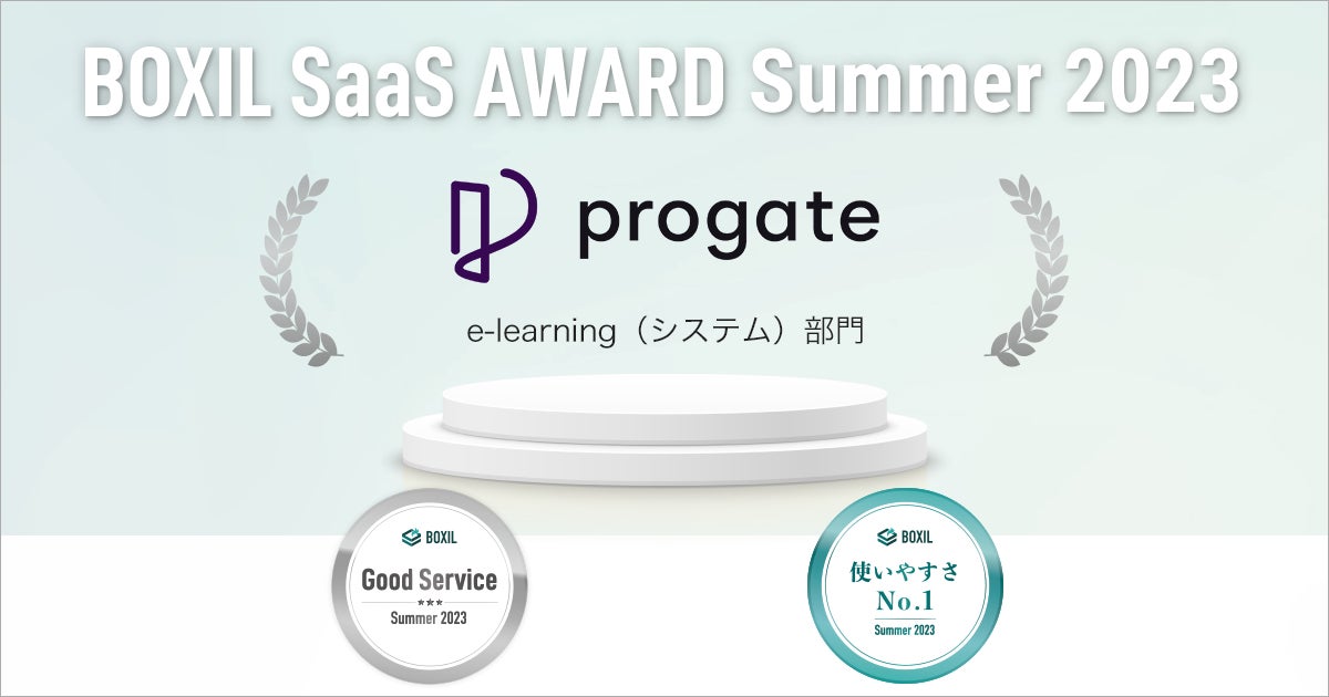 「BOXIL SaaS AWARD(ボクシル サース アワード)」は、SaaS比較サイト「BOXIL SaaS(ボクシル サース)」を運営するスマートキャンプが、優れたSaaSを審査、選考、表彰するイベントです。今回の「BOXIL SaaS AWARD Summer 2023」は、2022年4月1日から2023年03月31日までの1年間で新たに投稿された口コミ約16,000件を審査対象としています。「Progate」は今回、eラーニング(システム)部門で「Good Service」「使いやすさNo.1」に選ばれました。
