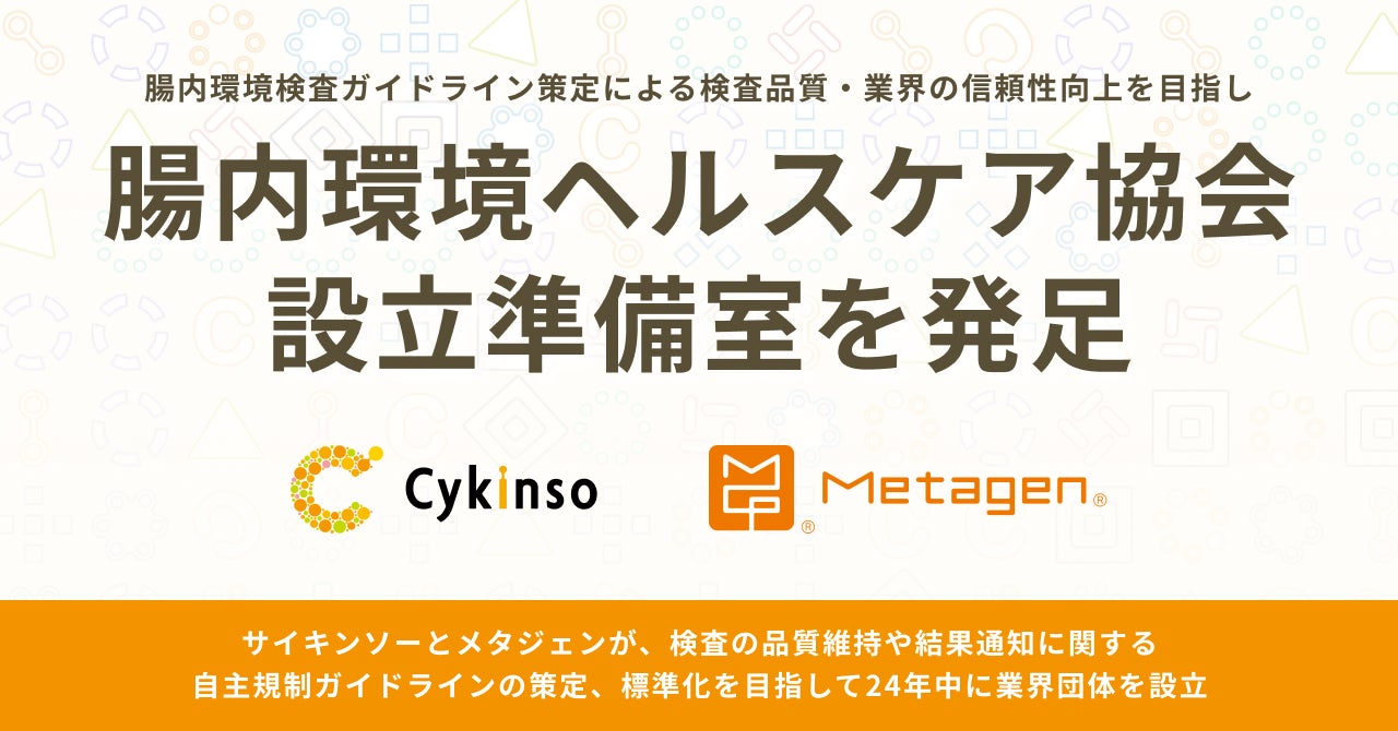 株式会社サイキンソー(本社:東京都渋谷区、代表取締役:沢井悠、以下、サイキンソー)は、株式会社メタジェン(本社:山形県鶴岡市、代表取締役社長CEO:福田真嗣、以下、メタジェン)とともに、腸内環境検査業界の発展と信頼性の向上を目的とする業界団体「腸内環境ヘルスケア協会」の設立、および自主規制ガイドラインの策定を目指しています。本日付けで業界団体設立準備室を発足し、24年中の団体設立に向けた活動が本格始動することをお知らせいたします。