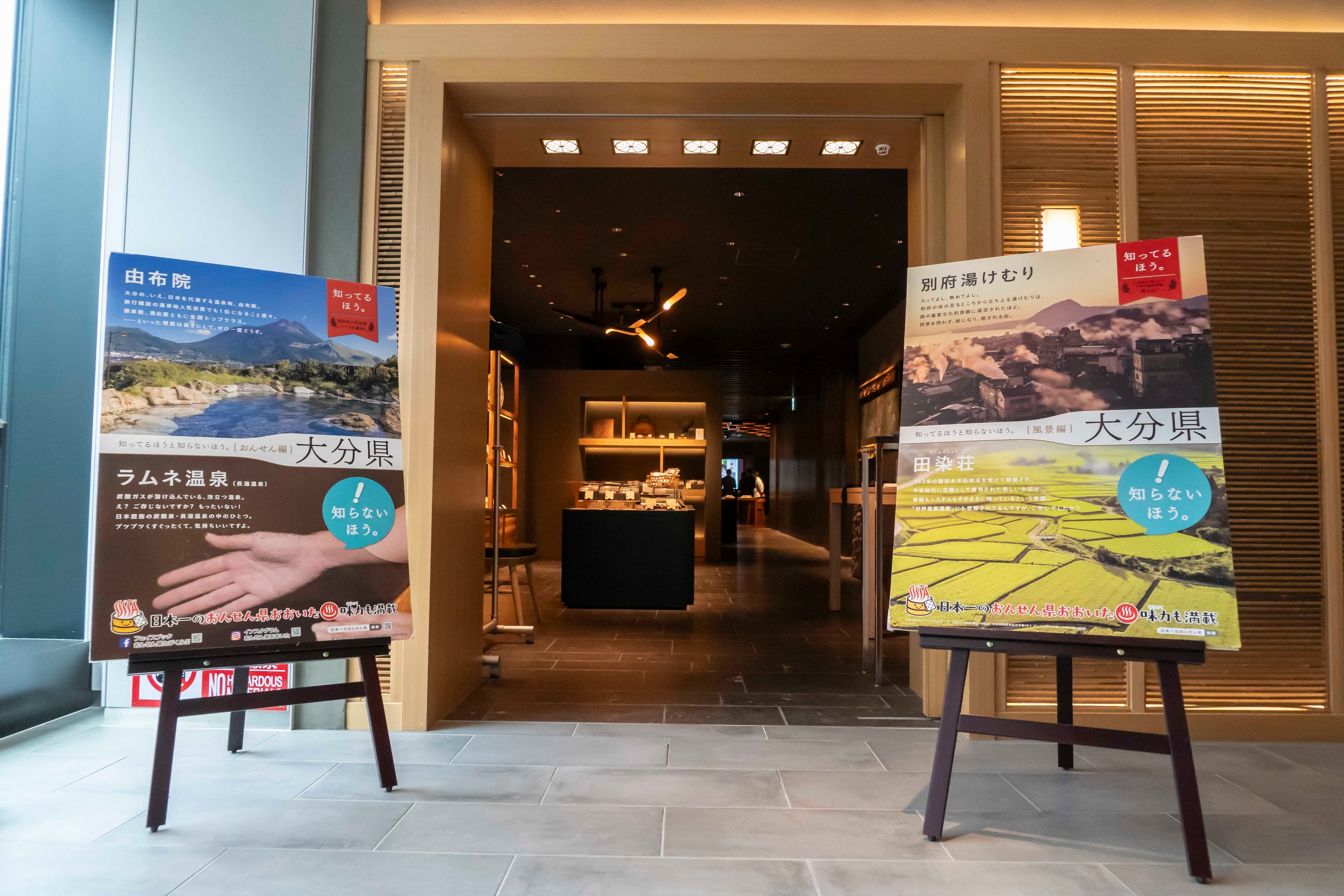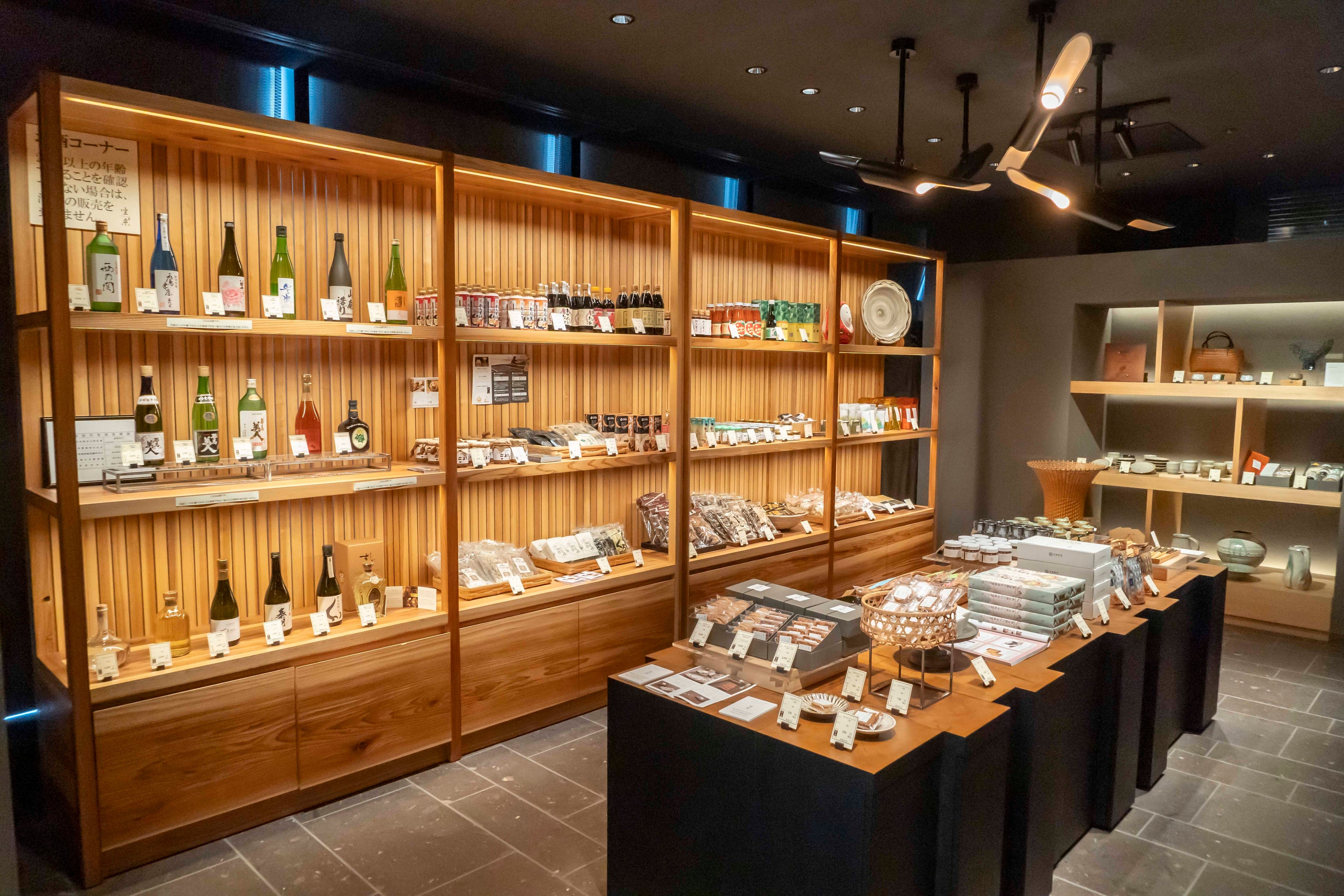 坐来大分は、大分県の公式アンテナショップとして東京銀座に2006年に開業。大分県の食材を使った料理を提供するレストラン中心のスタイル。2021年5月に東京有楽町の数寄屋橋エリアに移転。大分の素材や伝統工芸を数多く取り入れたモダンでシックな内装が特徴。入口には大分の物販コーナーを設けています。