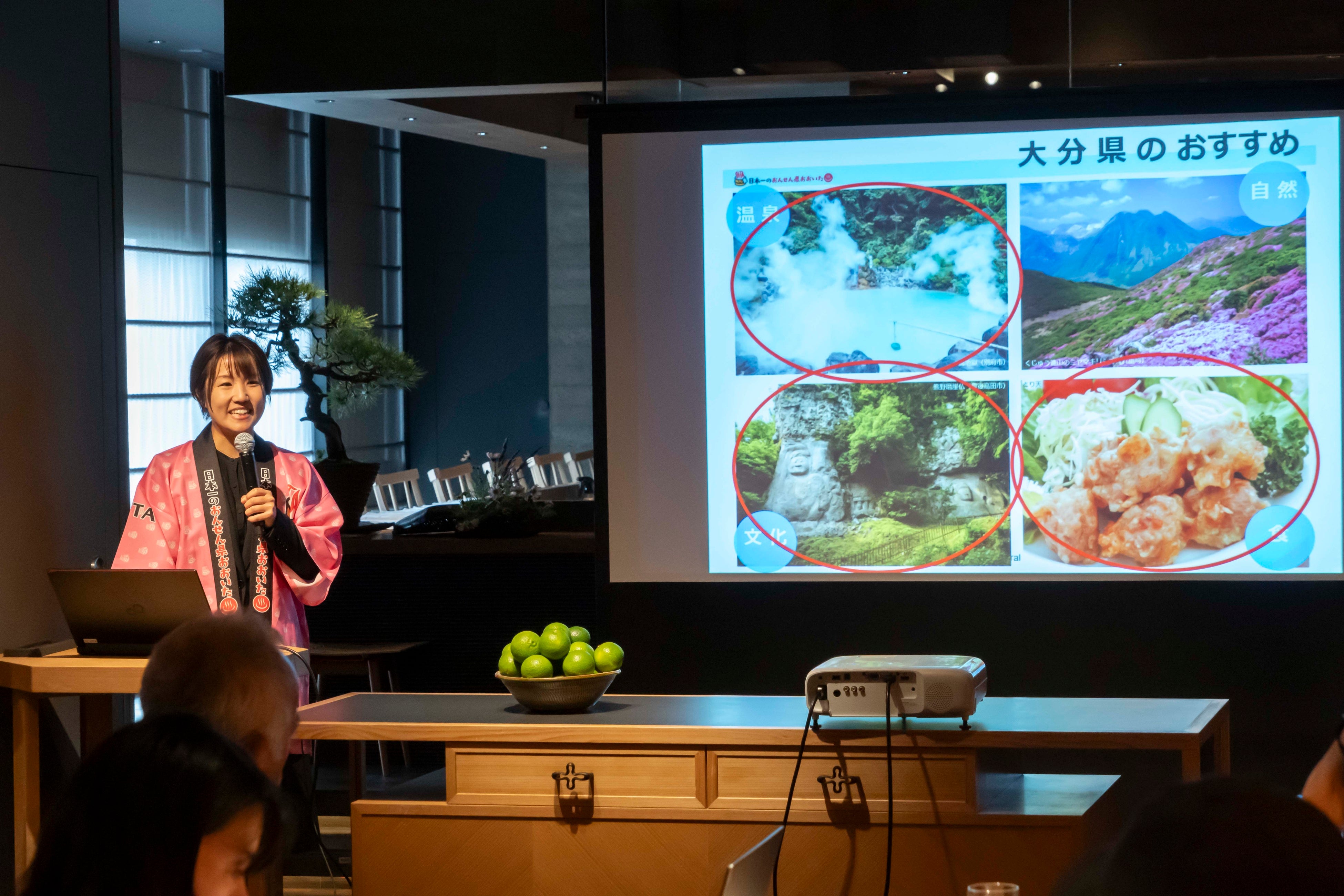 また、大分県 広報広聴課 屋野愛音 主事は「大分県の様々な観光資源・食の魅力」について説明し、「日本有数の好漁場・大分で取れる新鮮な海の幸は、1年を通して様々な種類を堪能できますので、ぜひ一度味わっていただきたいです」と話しました。
