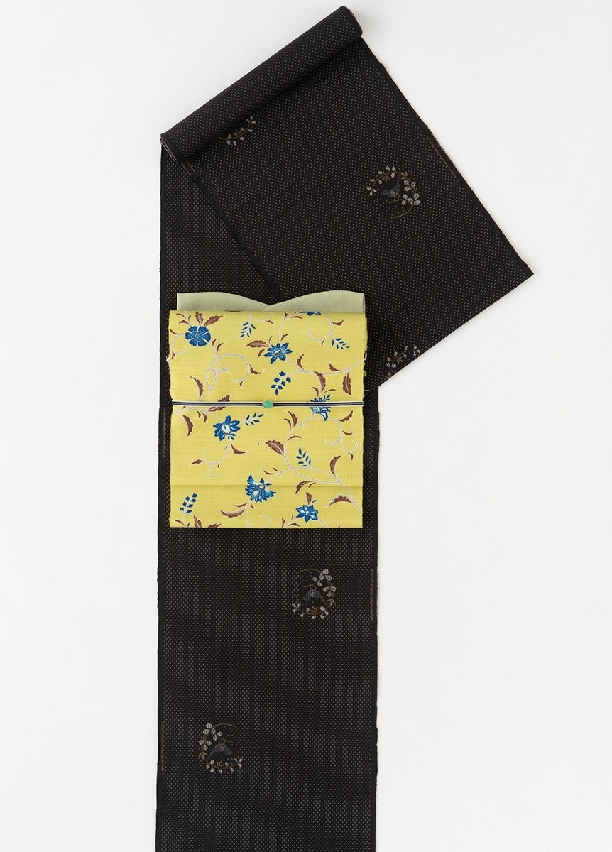 染九寸名古屋帯 更紗 黄色