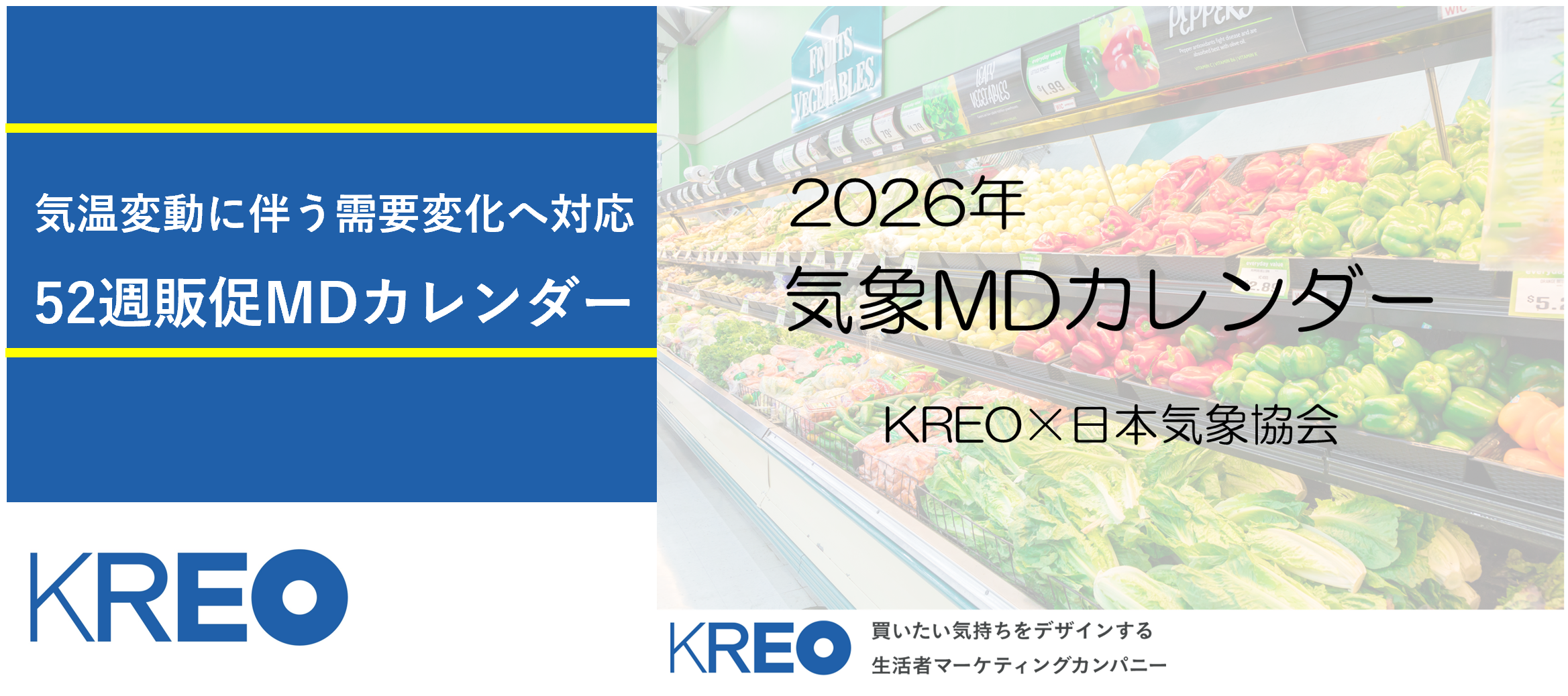 生活者視点をベースに、マーケティングとプロモーションを提案する株式会社クレオ(本社:東京都千代田区、代表取締役社長:横井 司)は、POSデータ・生活行動調査・気象データ解析結果を分析し、季節の生活行動の“基本シーズン”と気温変動に伴う“需要期の前倒し・後ろ倒し”までを一枚で可視化できる「2026気象MDカレンダー上期」を2025年12月17日(水)より発売いたします。
