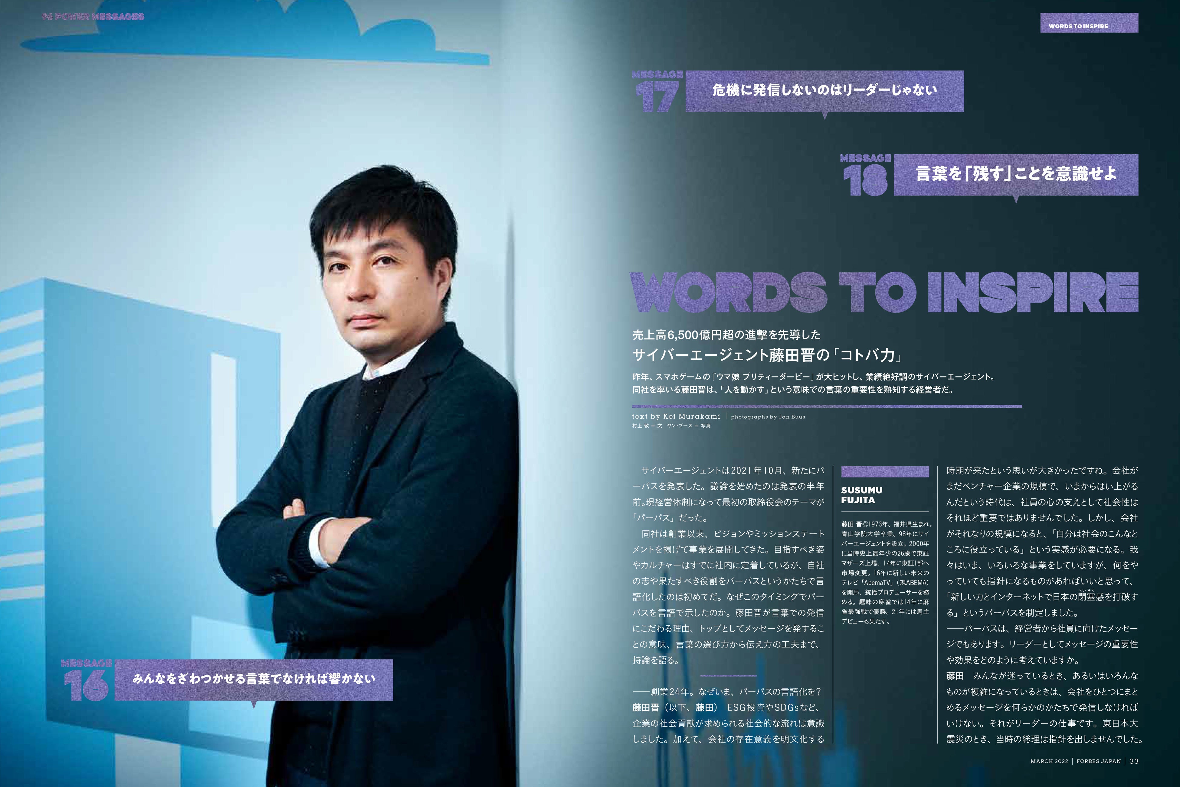 【好評発売中】ジェフ・ベゾスや藤田晋の「コトバ」も。『Forbes JAPAN』3月号は「組織を動かしたパワーメッセージ96」特集