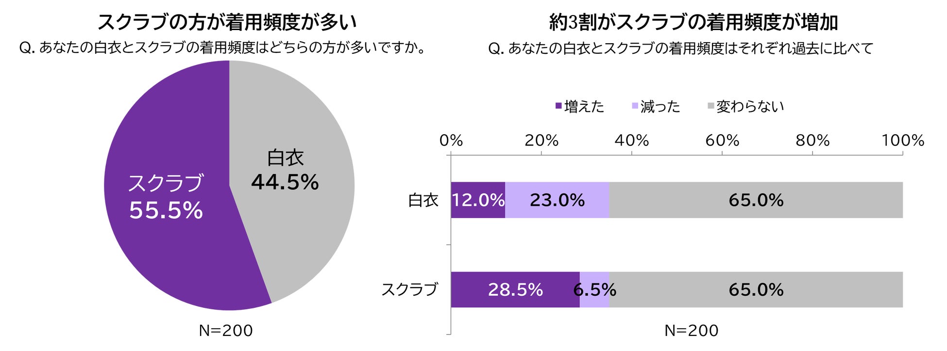 調査対象:普段白衣とスクラブを両方月1回以上着ている、24~59歳の医師200名
