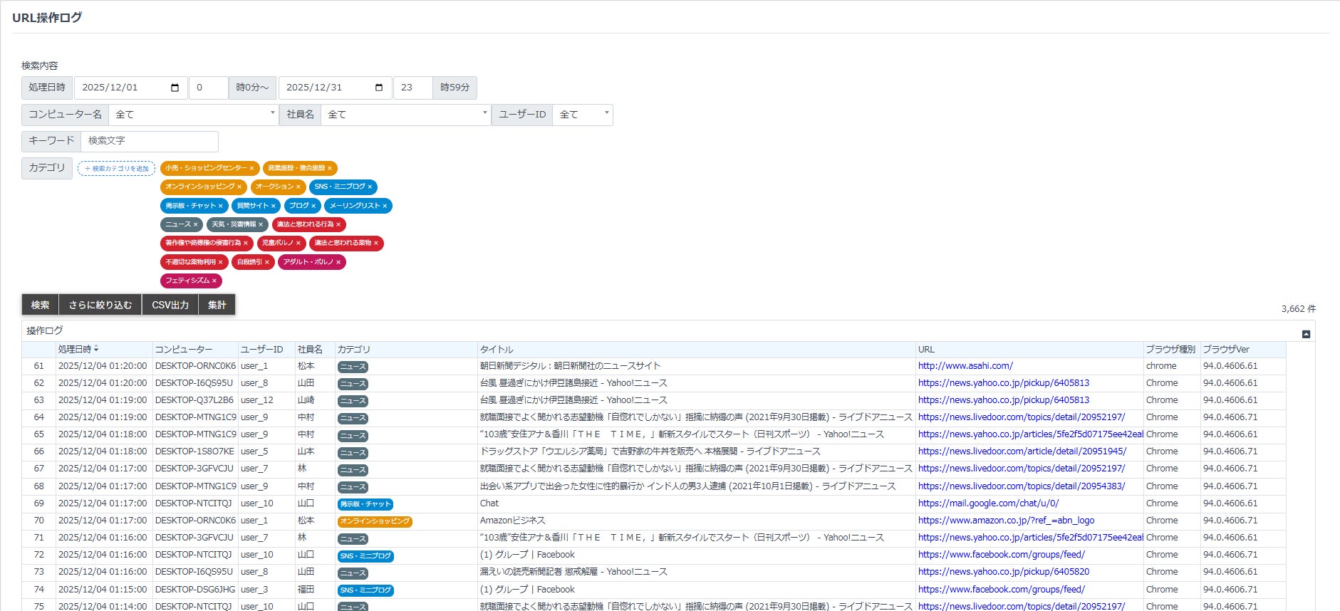 昨今、生成AIの普及や業務のデジタル化、慢性的な人材不足に伴い、従業員一人あたりのWebサイト閲覧量・操作量は増加傾向にあります。従来のログ管理ツールでは、全てのURLログを個別に精査する必要があり、膨大なデータの中からリスクを特定する作業が管理職や情報システム担当者の大きな負担となっていました。