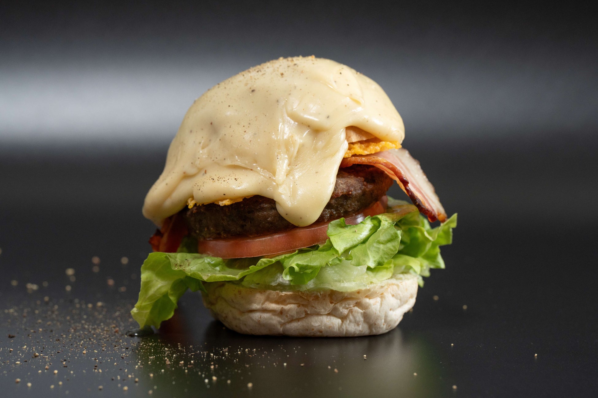 モッツァレラやゴーダチーズを使用したソースがたっぷりかかったチーズフォンデュ風のキングバーガー。クリーミーでマイルドな味わいのソースはくどすぎず飽きのこない仕上がりに。インパクトのある見た目とパティだけでなくベーコンも入った具材はまさにKINGの名のとおりボリューム感もたっぷり。カリカリに焼き上げたチーズのトッピングもお楽しみください。
