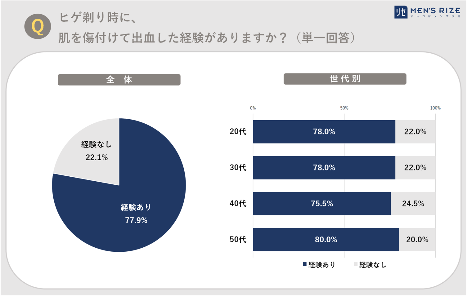⑤【ヒゲ剃り時の出血】8割が「経験あり」(77.9%)