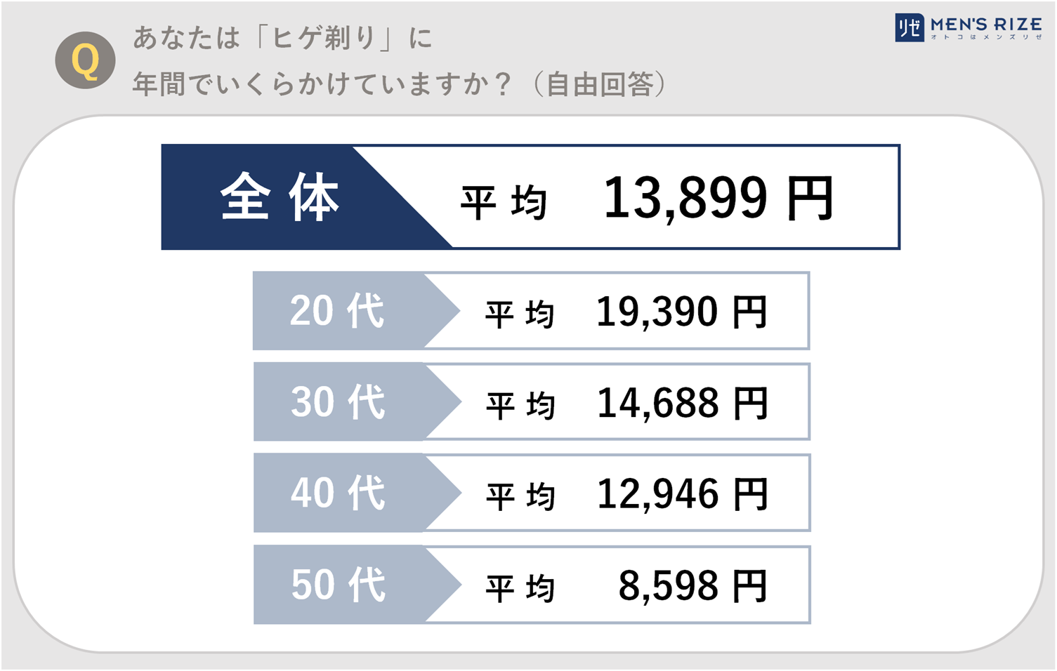 ③【年間のヒゲ剃り費用】は「平均13,899円」(月額換算だと、1,158円)
