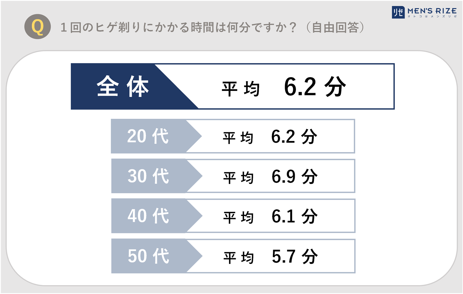 ②【1回のヒゲ剃りにかかる平均時間】は「6.2分」