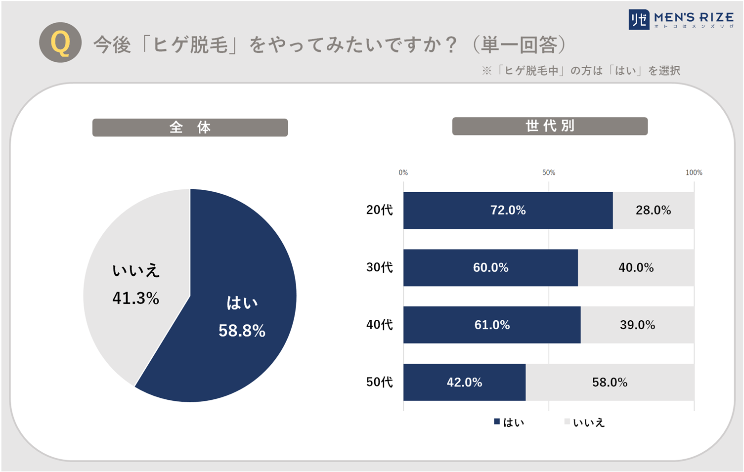 ⑧【「ヒゲ脱毛」やってみたい?】男性6割が「ヒゲ脱毛やりたい」と回答(58.8%)