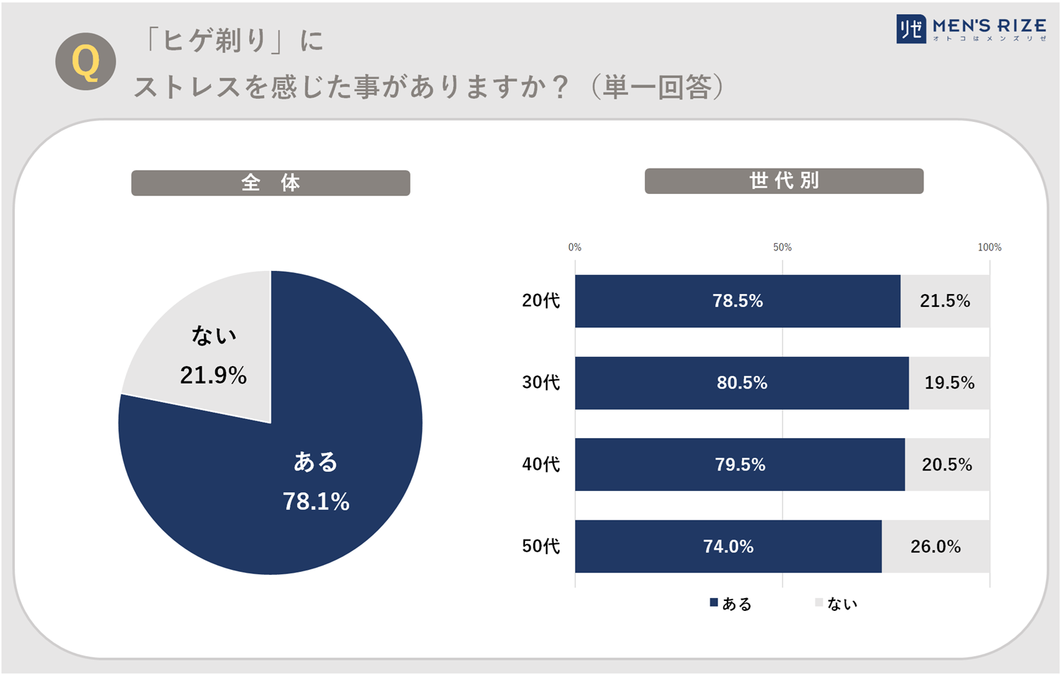 ●「ヒゲ剃りにストレスを感じたことがある」男性は、全体の8割(78.1%)