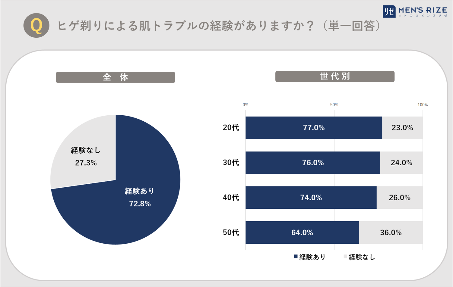 ④【ヒゲ剃りによる肌トラブル】7割以上が「経験あり」(72.8%)