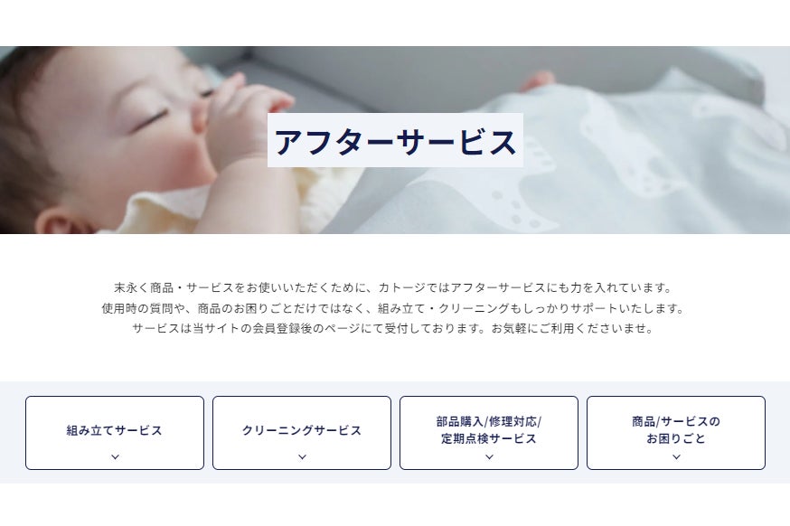 【カトージBtoB】の会員にご登録いただく前から、メーカーならではの充実したアフターサービスをご確認いただき、安心してご購入いただける体制を整えました。